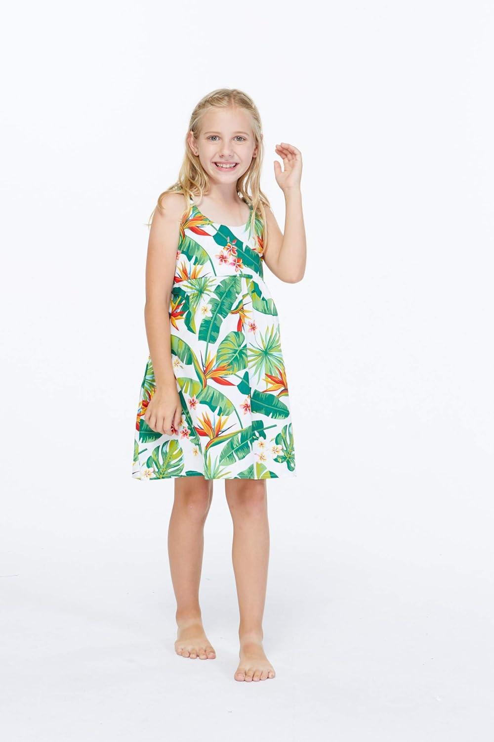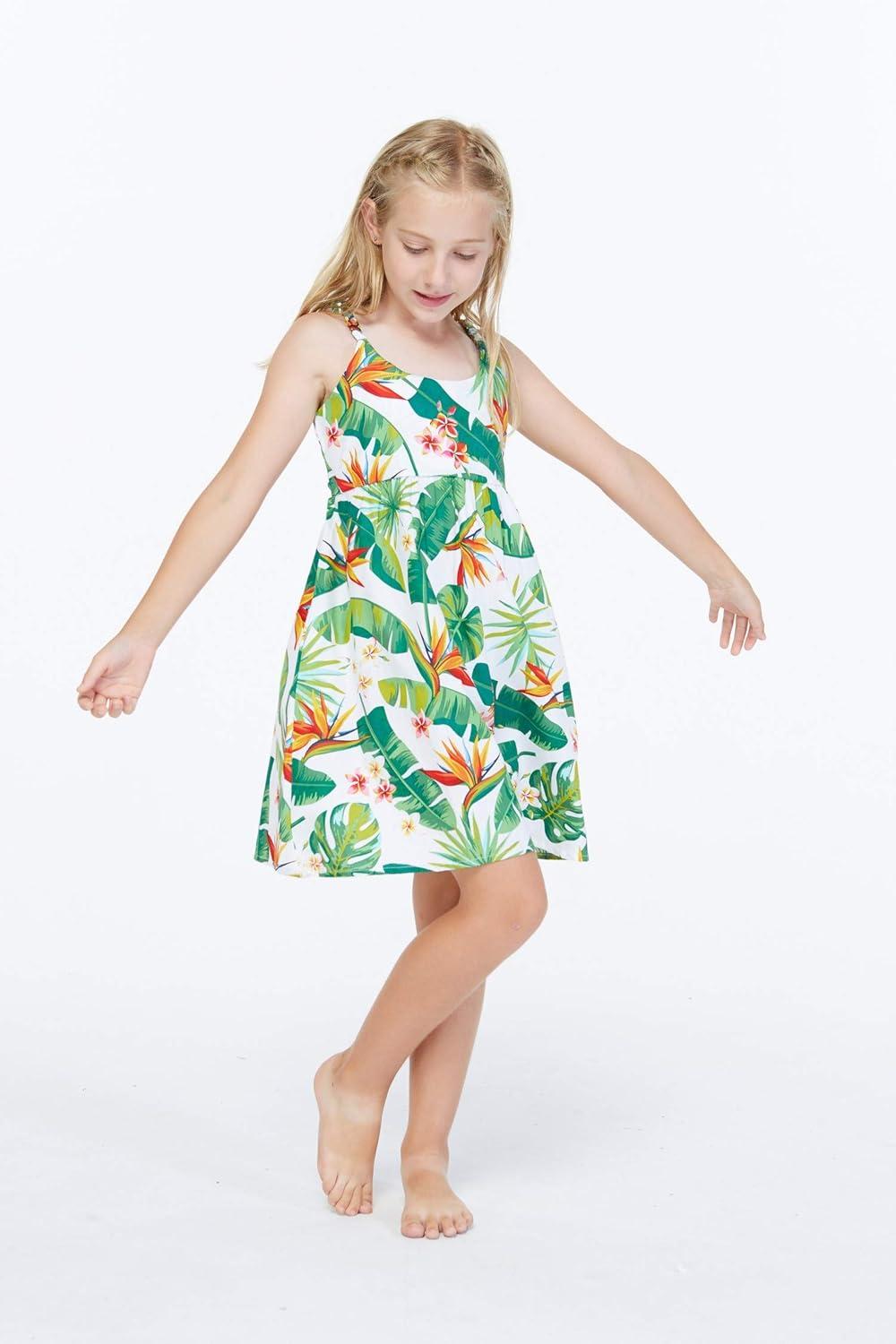 Girl Elastic Strap Empire Waist Dress in Classic Bird of Paradise in White(Brid of Paradise in White)