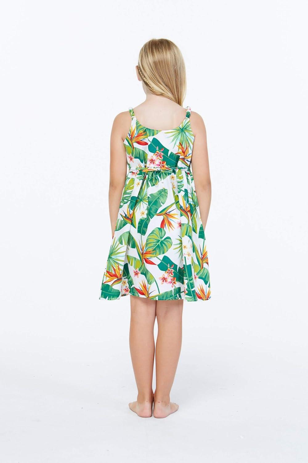 Girl Elastic Strap Empire Waist Dress in Classic Bird of Paradise in White(Flamingo Party in Black)
