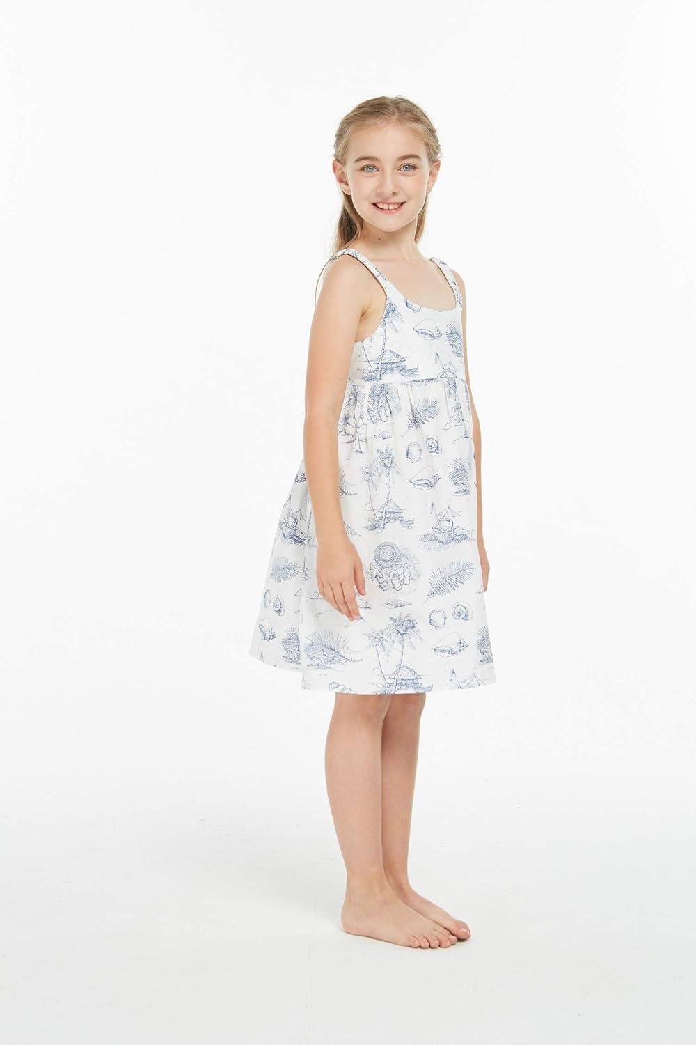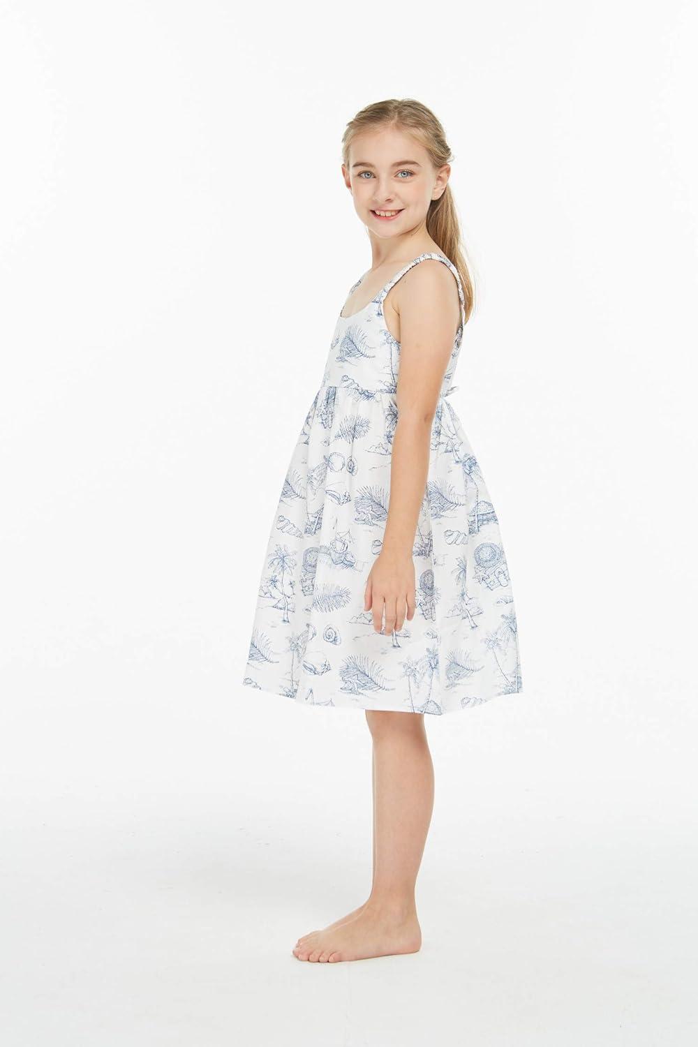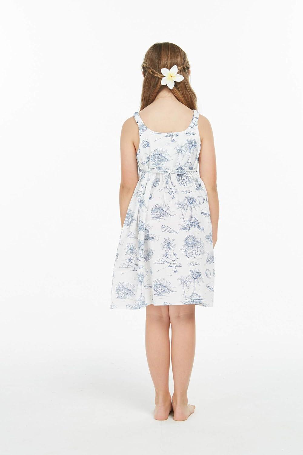 Girl Hawaiian Classic Empire Dress with Elastic Strap in Diamond Head Palms Beach(Diamond Head Palms Beach in White)