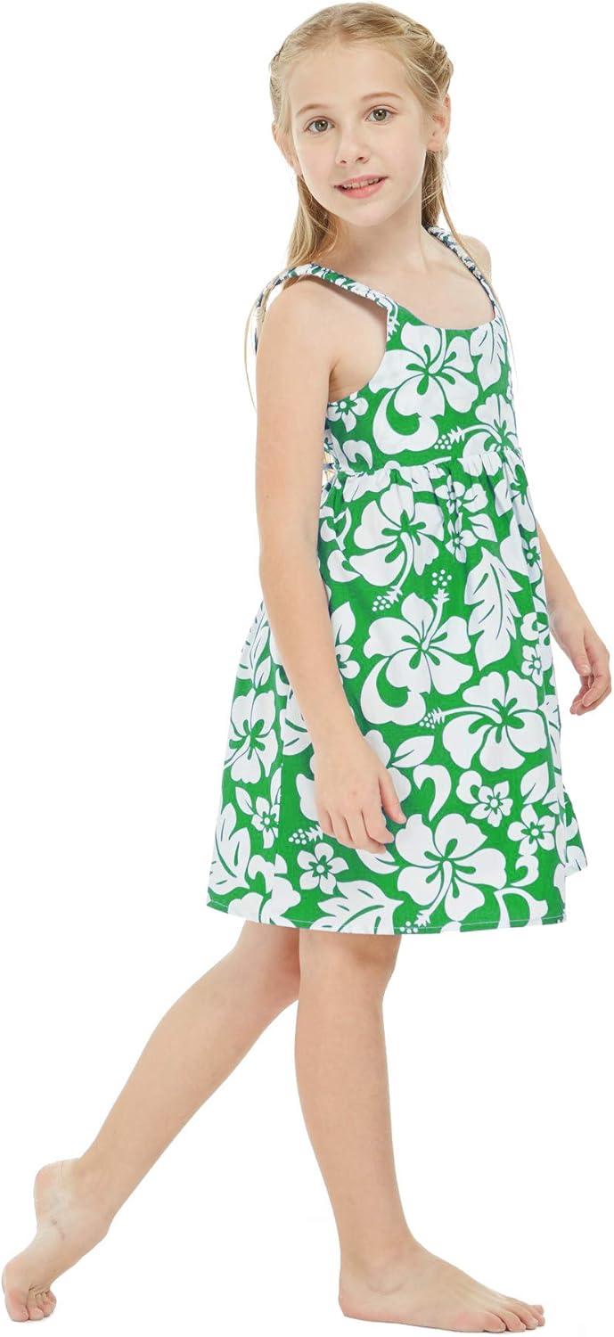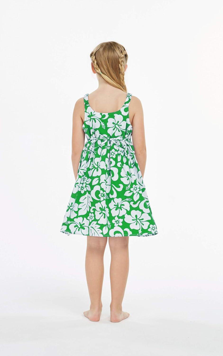 Girl Elastic Strap Empire Waist Dress in Classic Hibiscus Red(Vintage Classic Hibiscus Green)