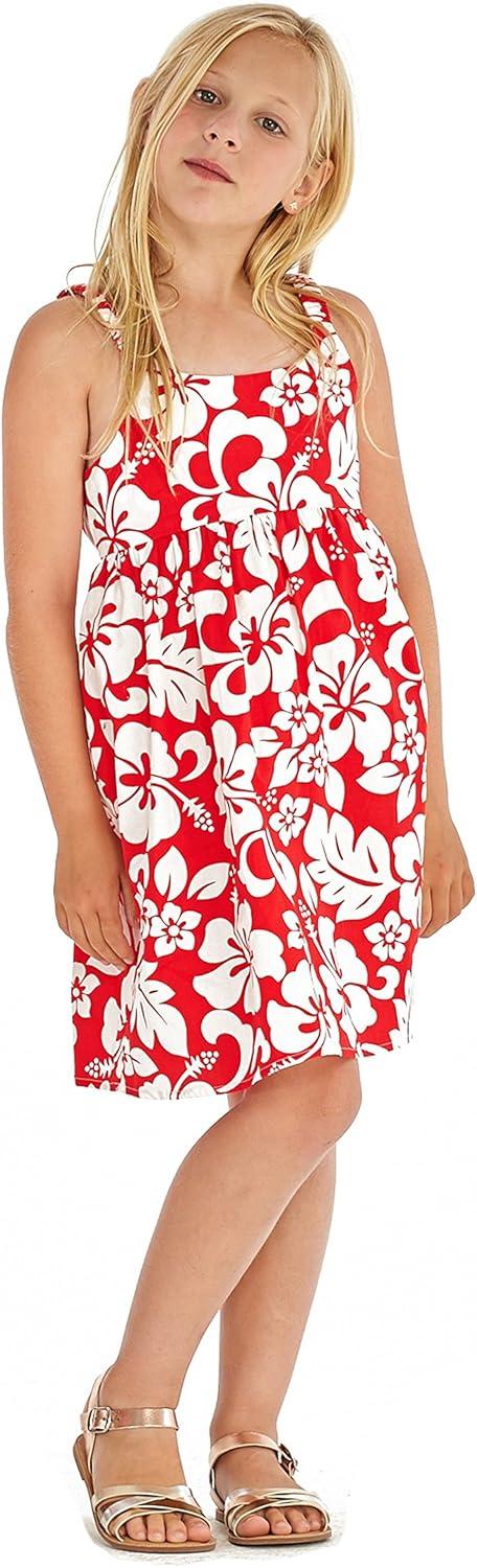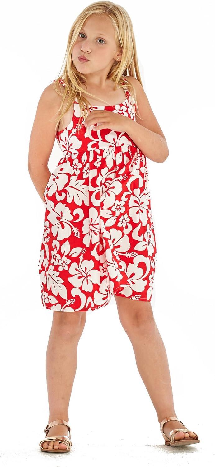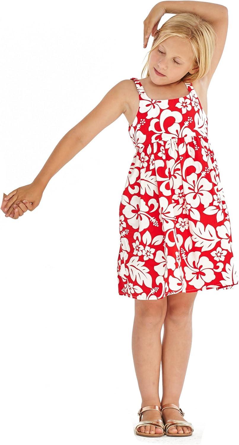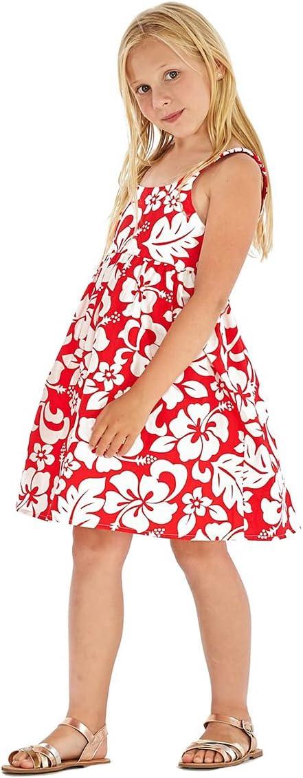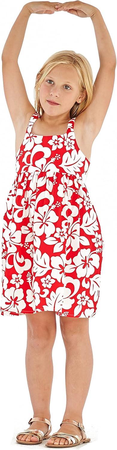 Girl Elastic Strap Empire Waist Dress in Classic Hibiscus Red(Vintage Classic Hibiscus Green)