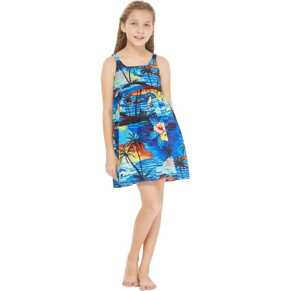 Girl Elastic Strap Empire Waist Dress in Sunset and Dolphin(Sunset and Dolphin Blue)