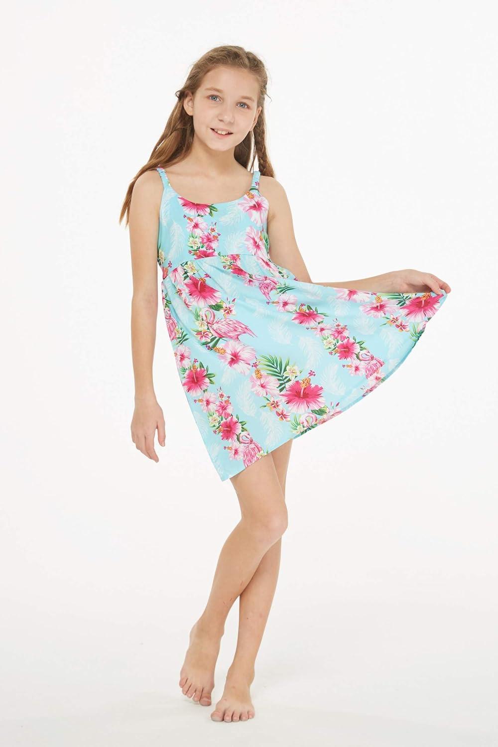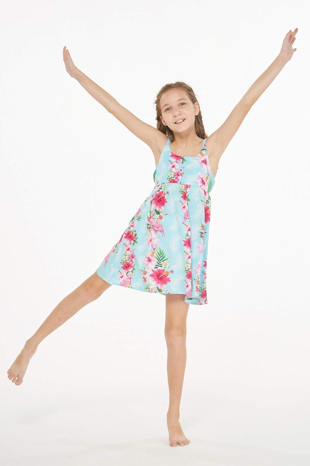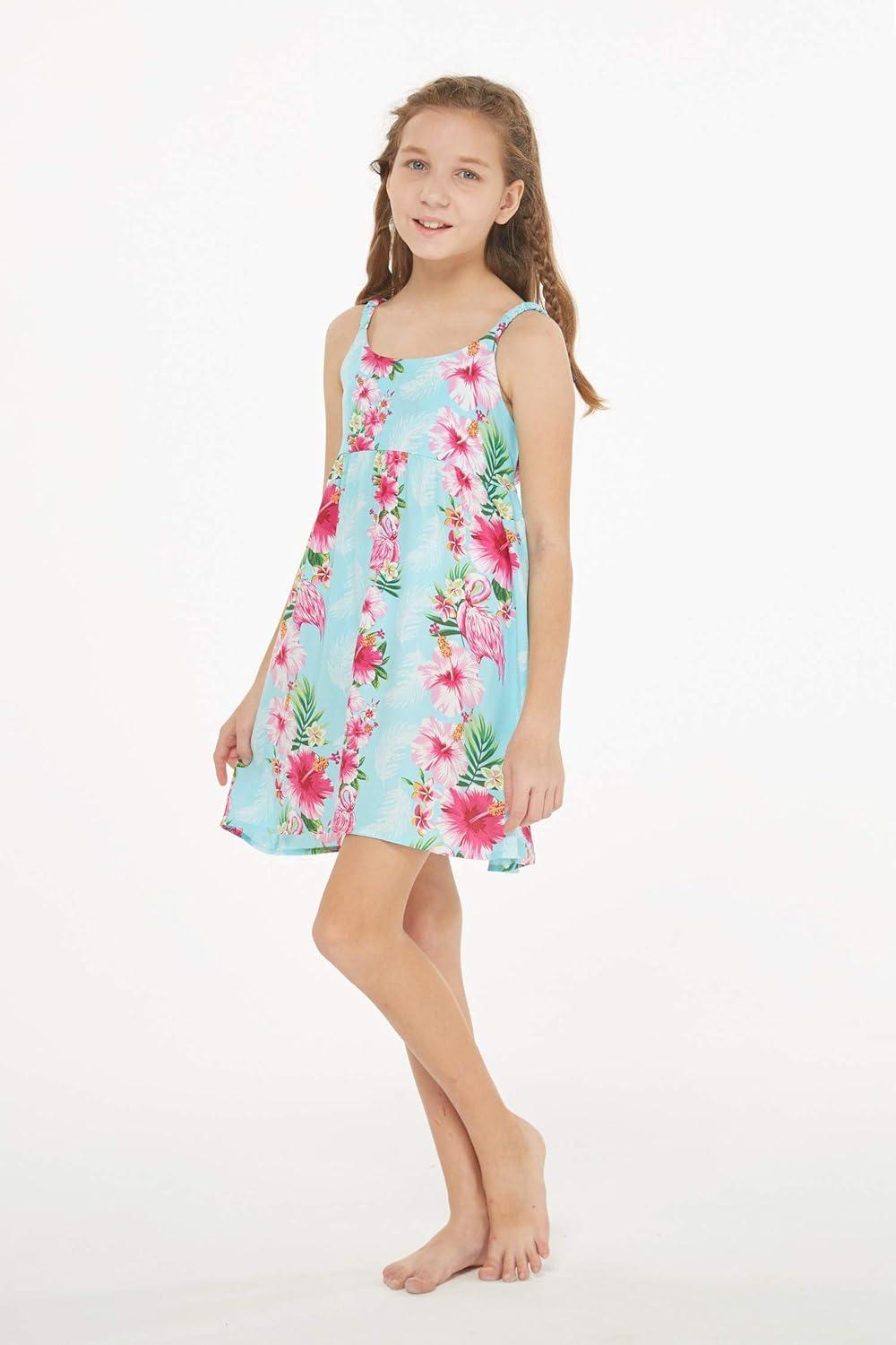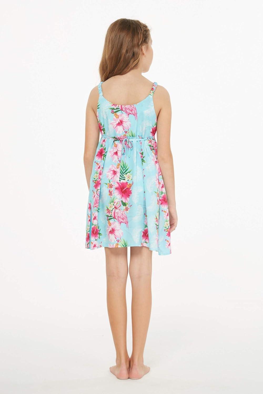 Girl Hawaiian Classic Empire Dress with Elastic Strap in Pink White Hibiscus Vine(Pink Turquoise Hibiscus Vine)