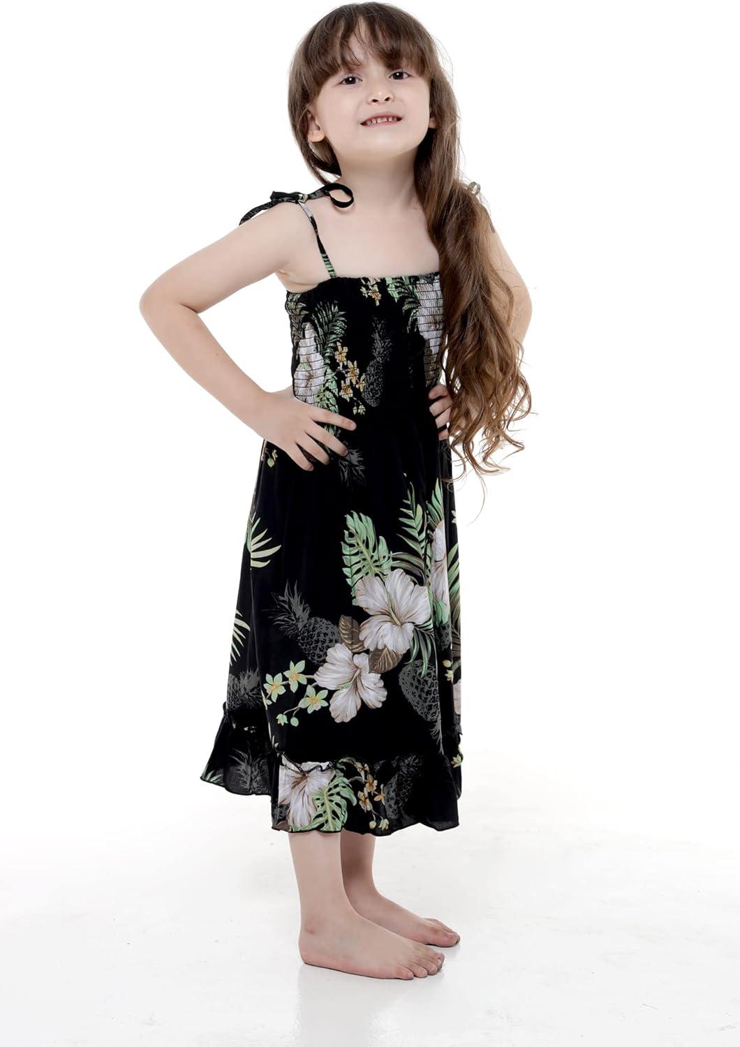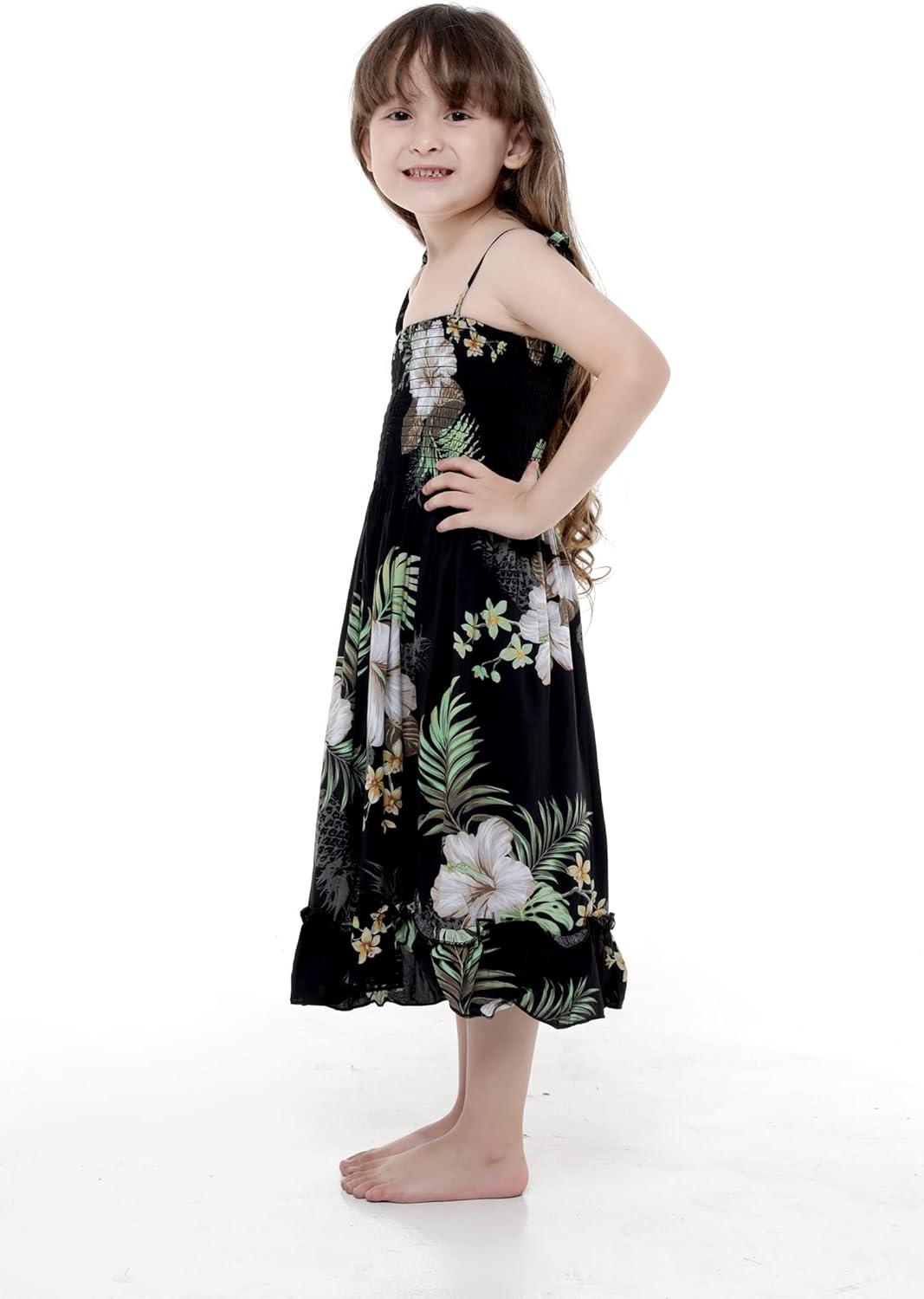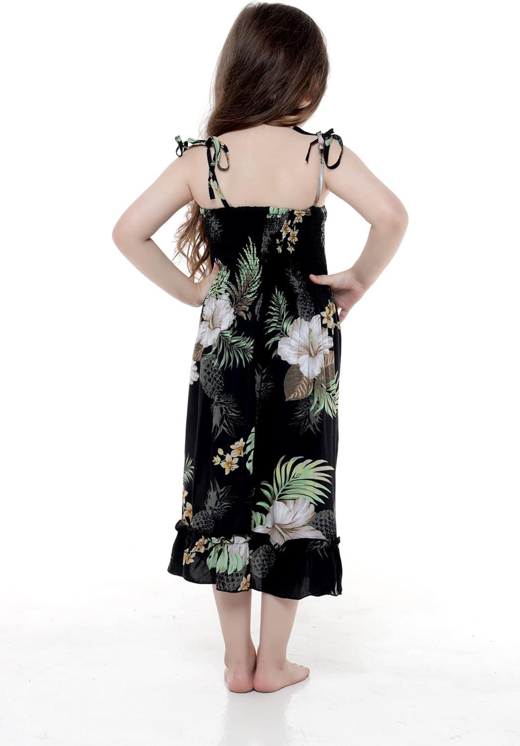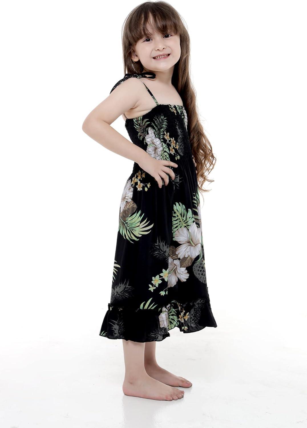 Girl Hawaiian Elastic Top Strap Dress in Pineapple Garden Black(Pineapple Garden Black)