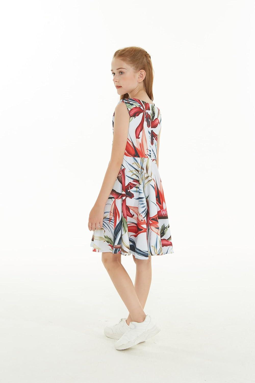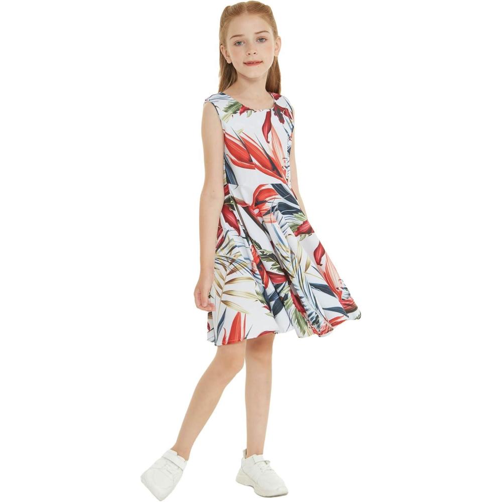 Girl Hawaiian Fit and Flare Dress in Flowering Koi Blue(Flowering Koi Blue)