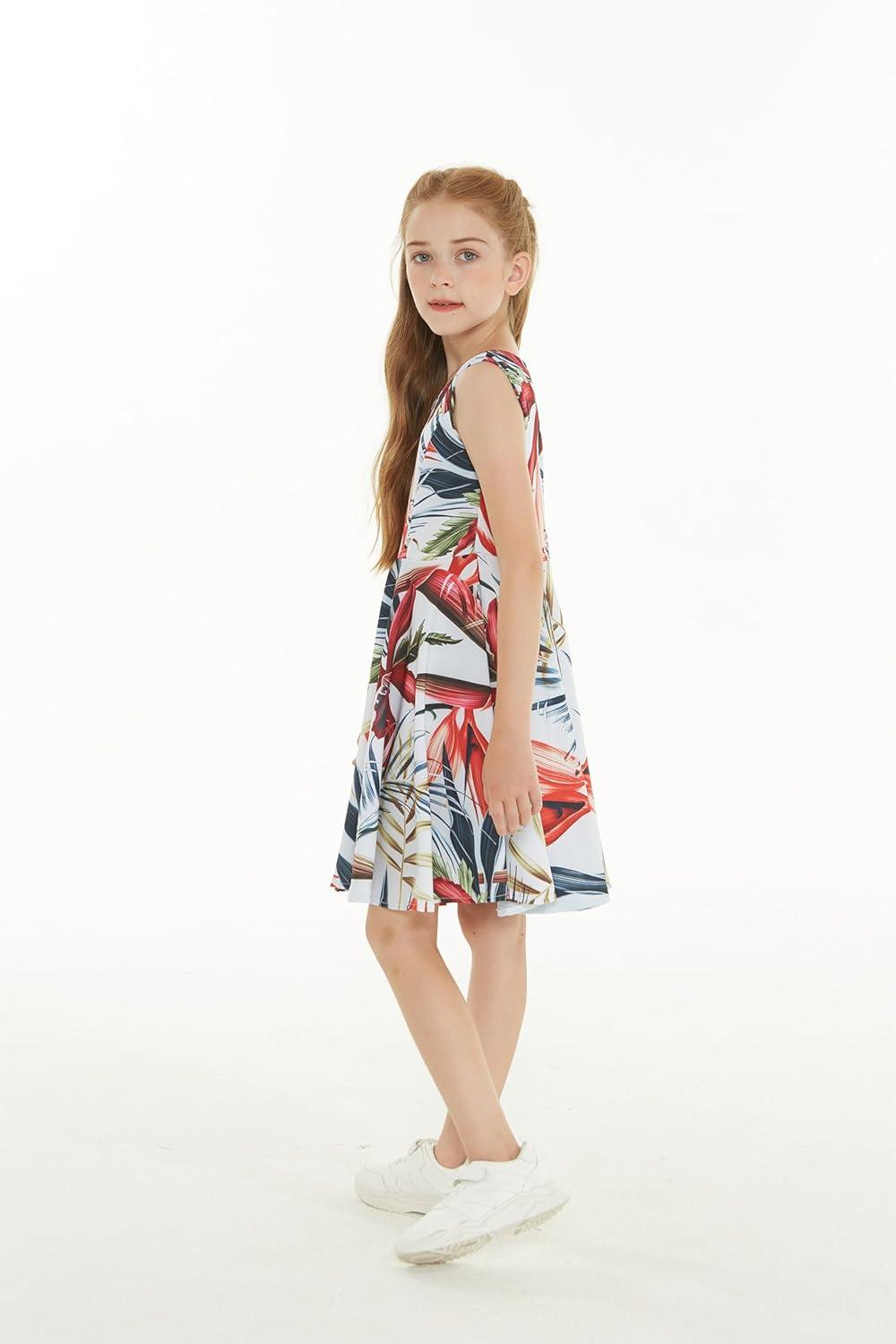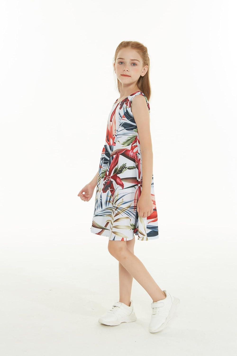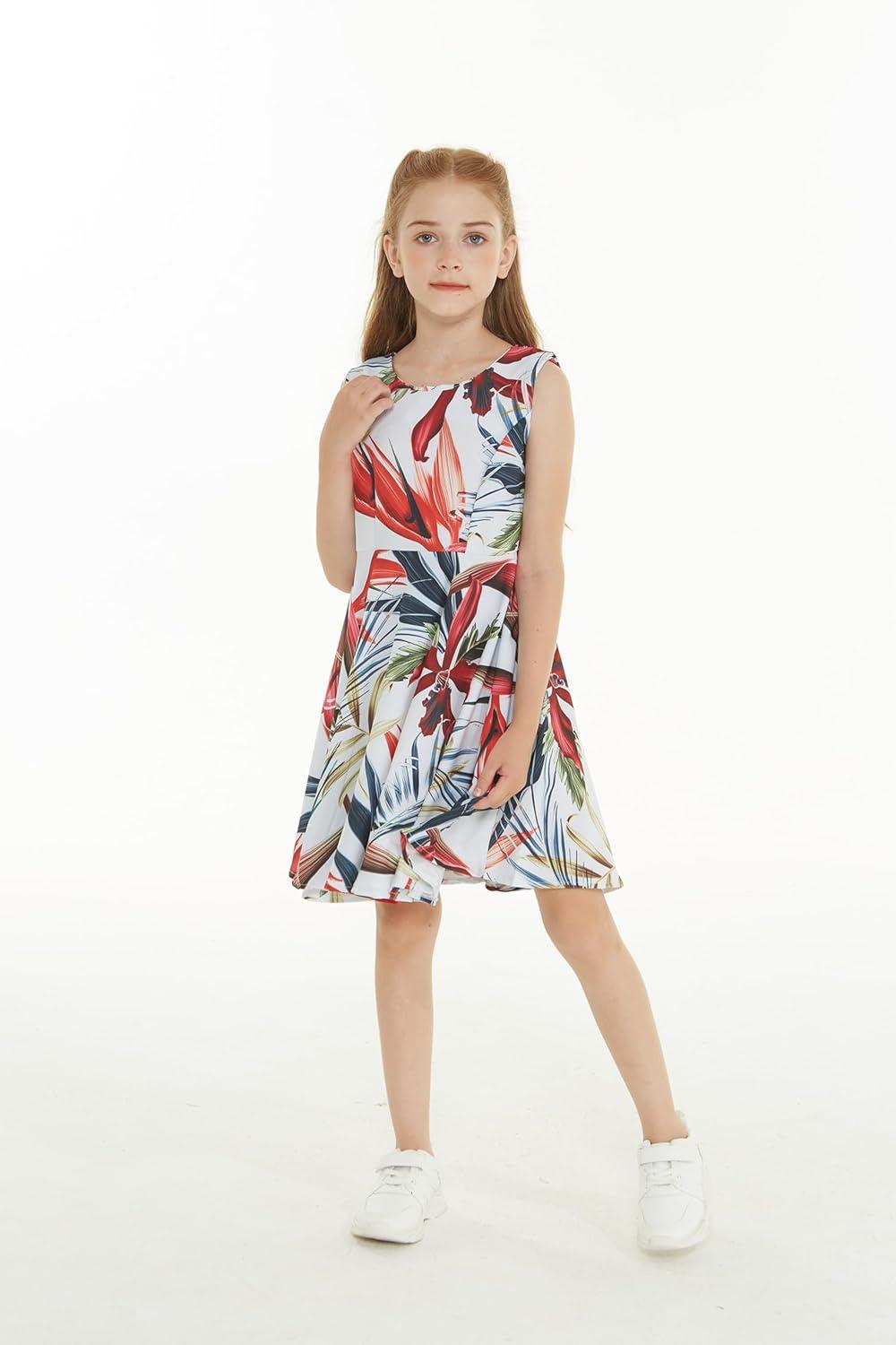 Girl Hawaiian Fit and Flare Dress in Flowering Koi Blue(Garden at Dawn Blue)