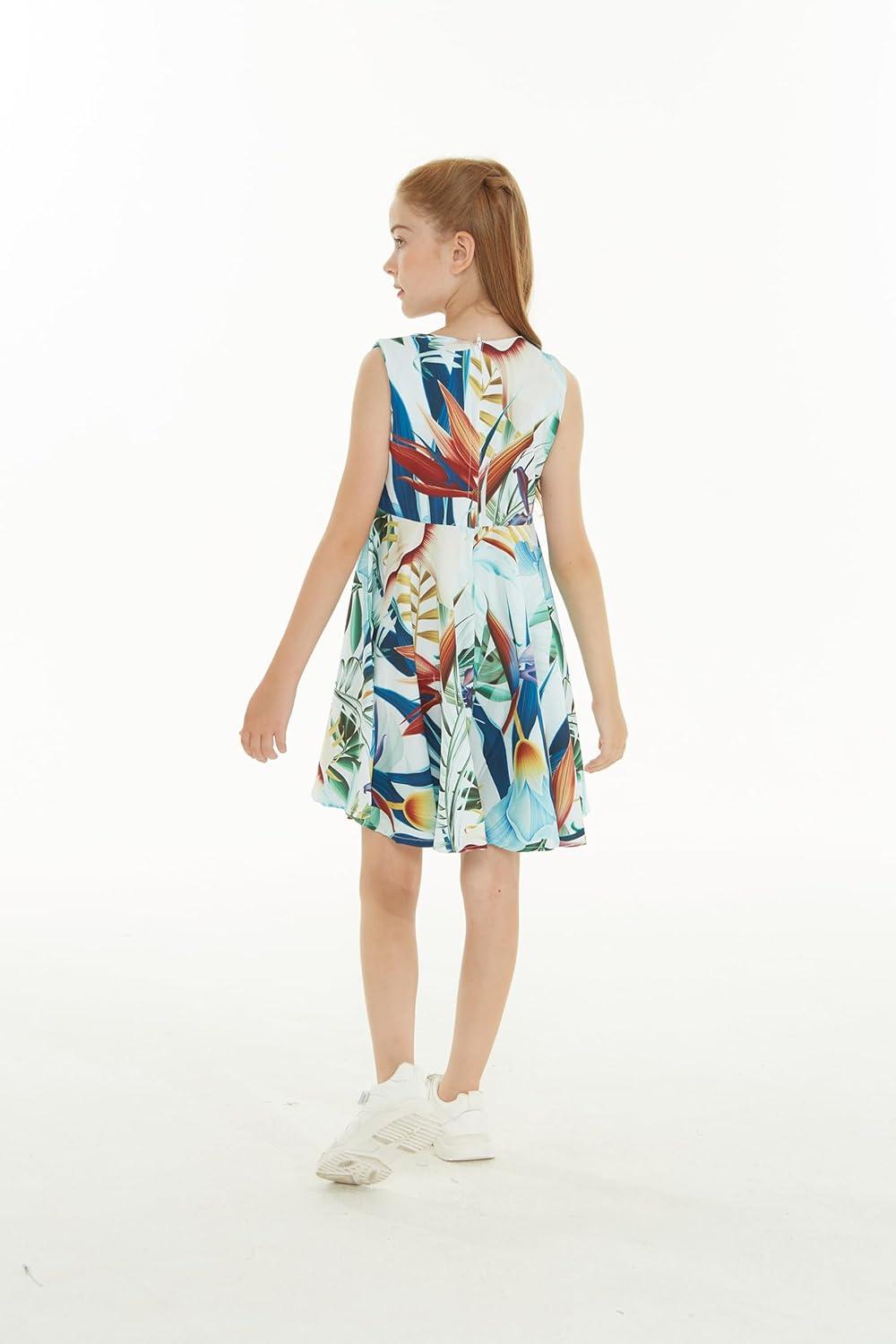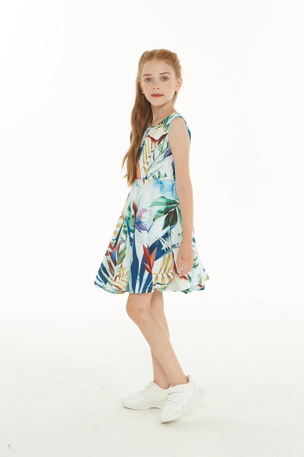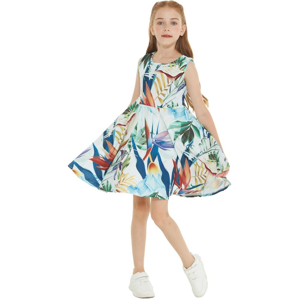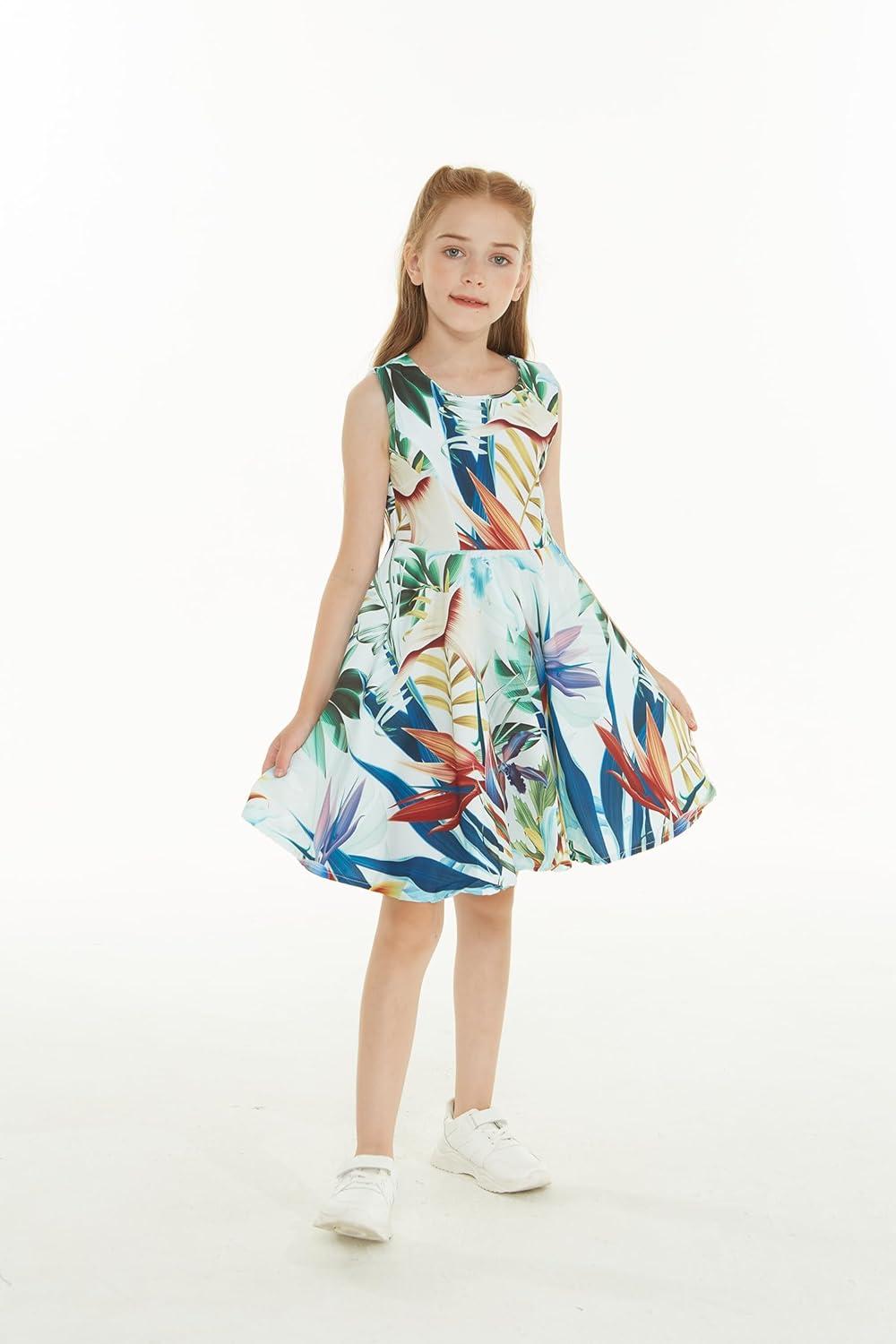 Girl Hawaiian Fit and Flare Dress in Flowering Koi Blue(Garden at Dawn Blue)