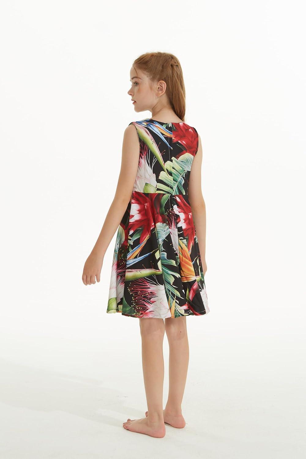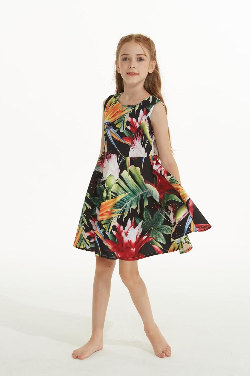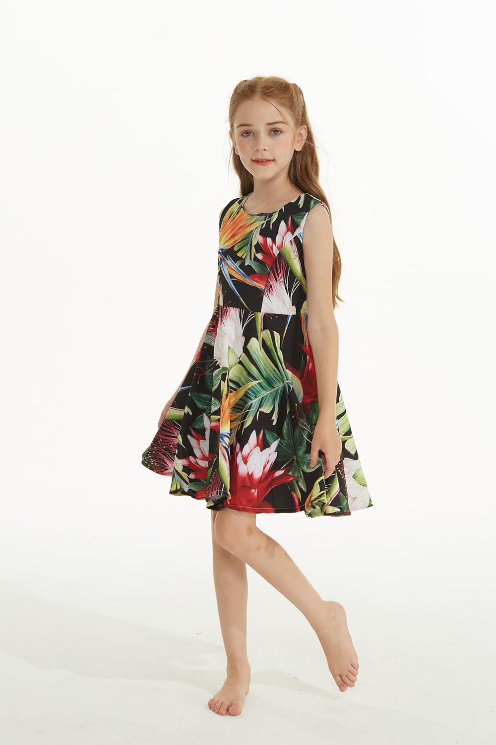Girl Hawaiian Fit and Flare Dress in Flowering Koi Blue(Tropical Twilight Black)