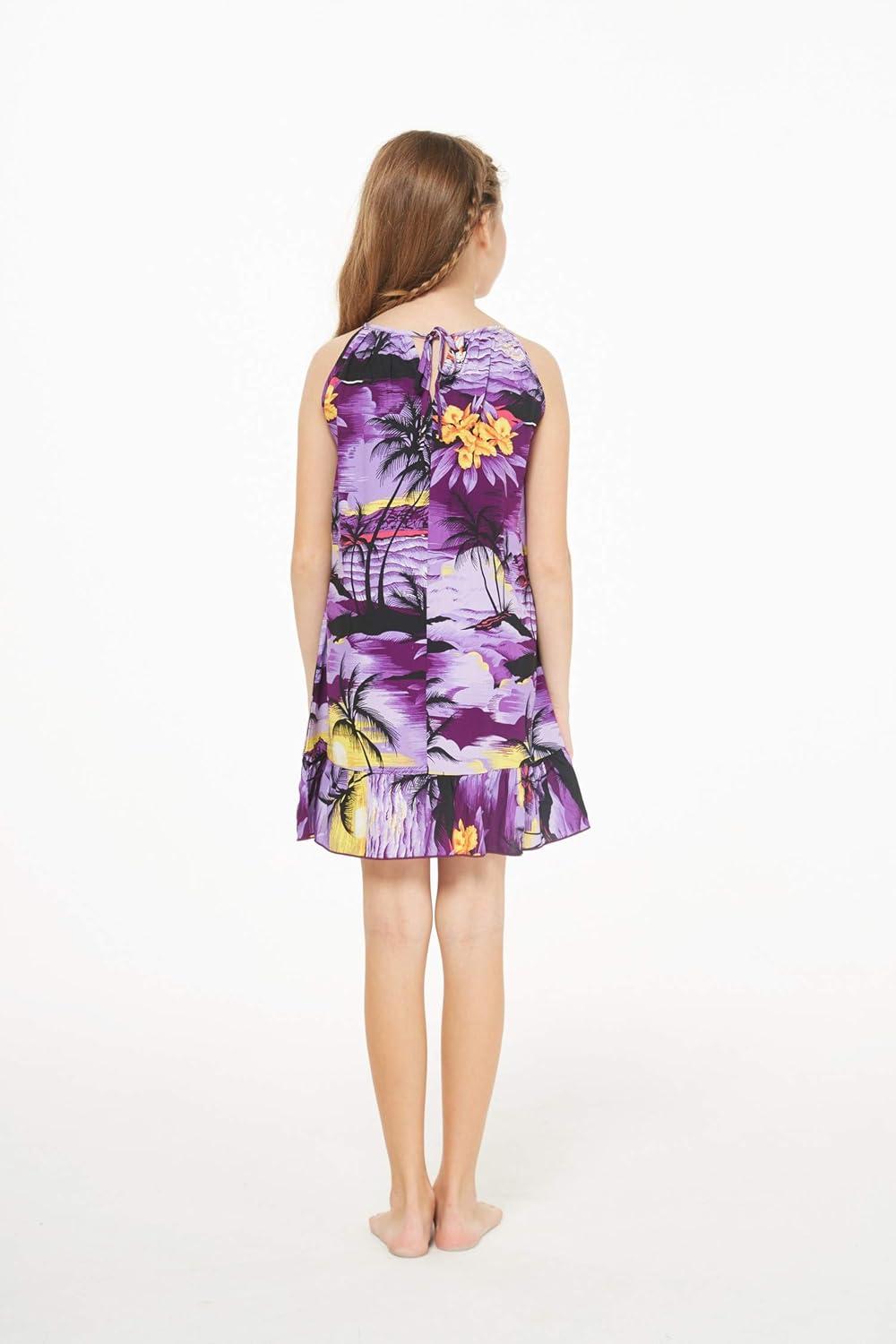 Girl Hawaiian Round Neck Dress in Sunset(Purple Sunset)