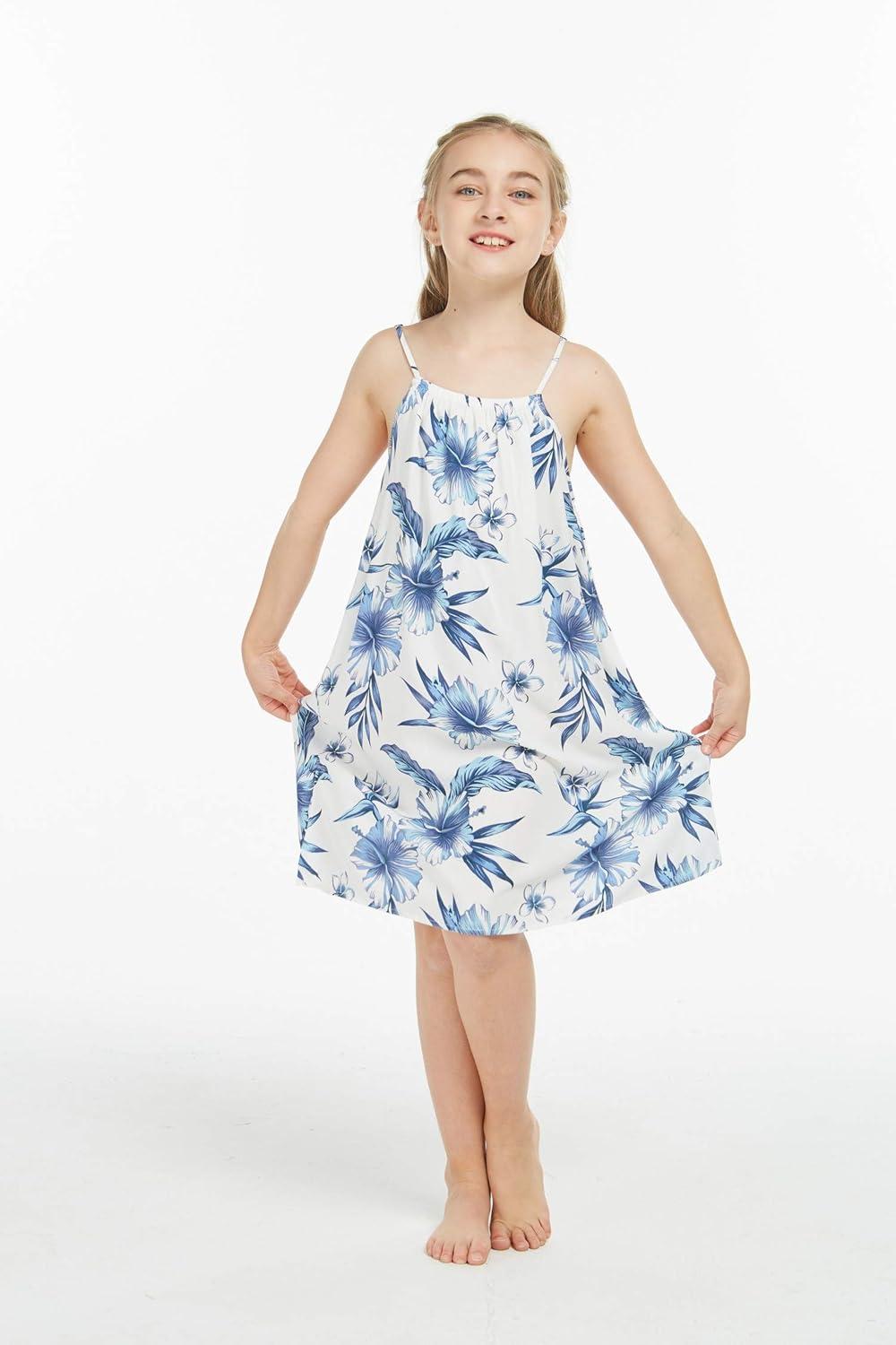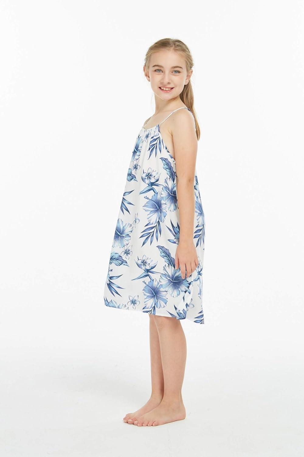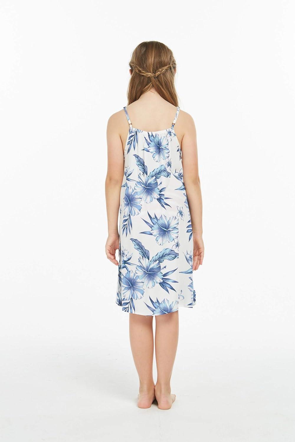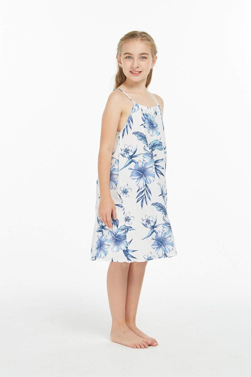 Girl Hawaiian Round Neck Dress in Wispy Cereus(Day Dream Bloom)