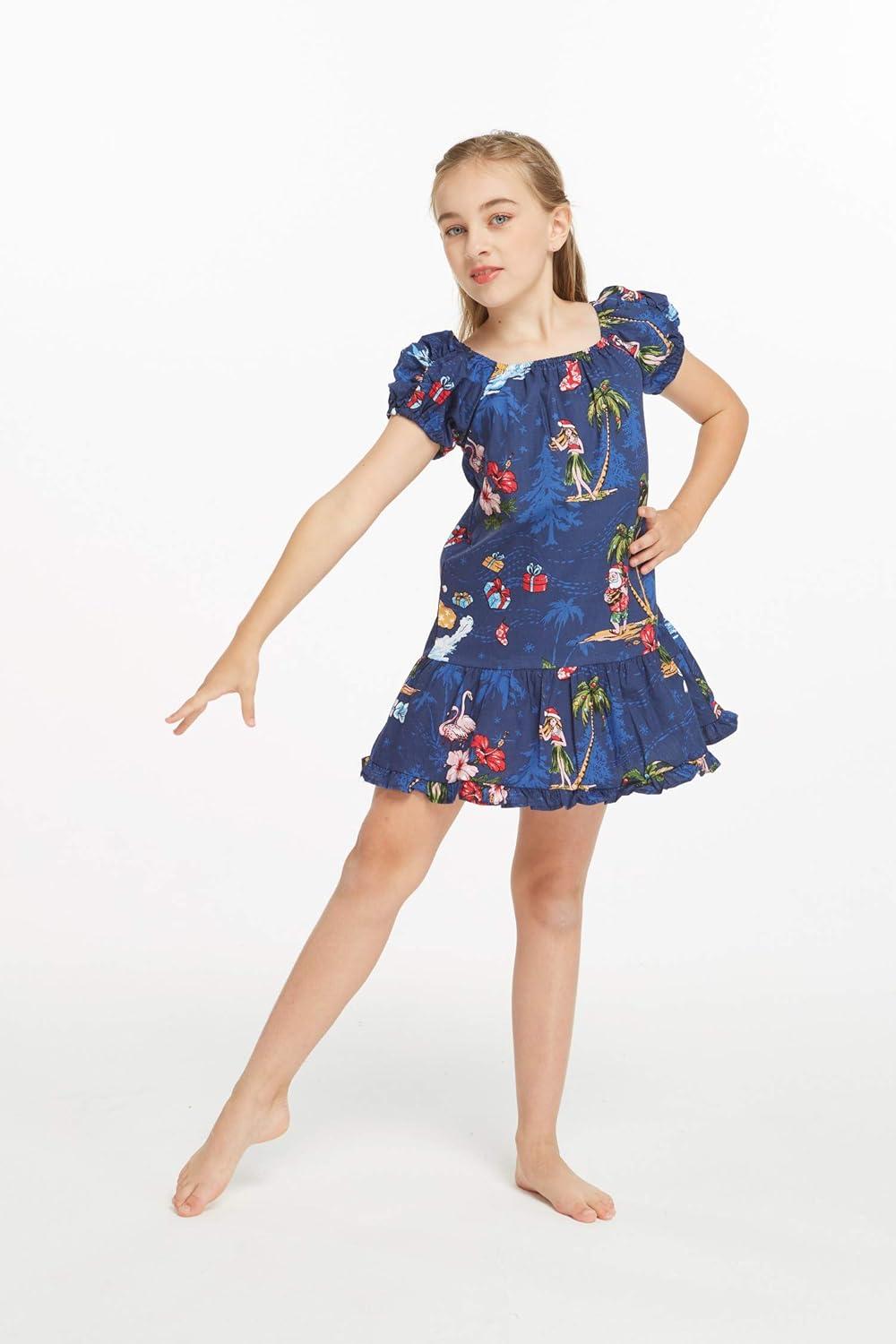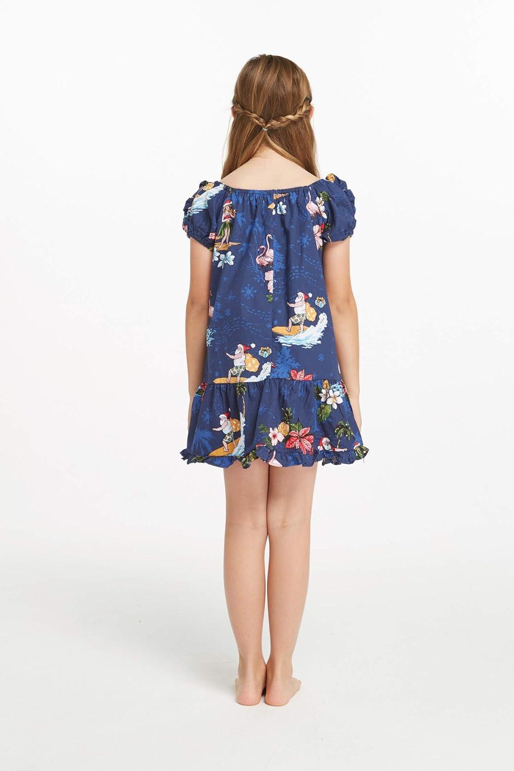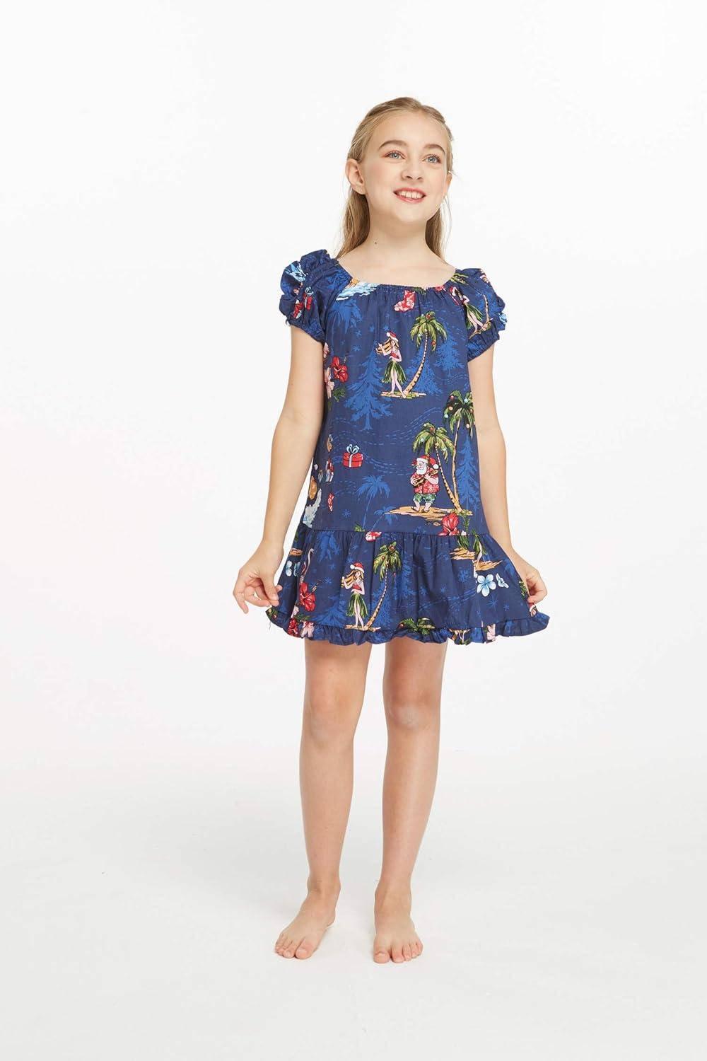 Girl Hawaiian Simple Muumuu Dress in Christmas Santa in Hawaii(Christmas Santa in Hawaii in Navy)