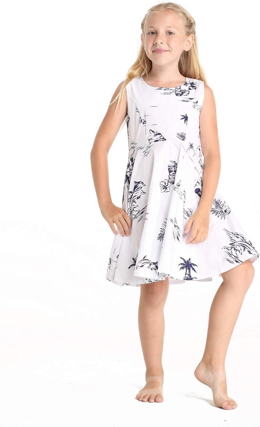 Girl Hawaiian Fit and Flare Dress in Flowering Koi Blue(Tropical Twilight Black)
