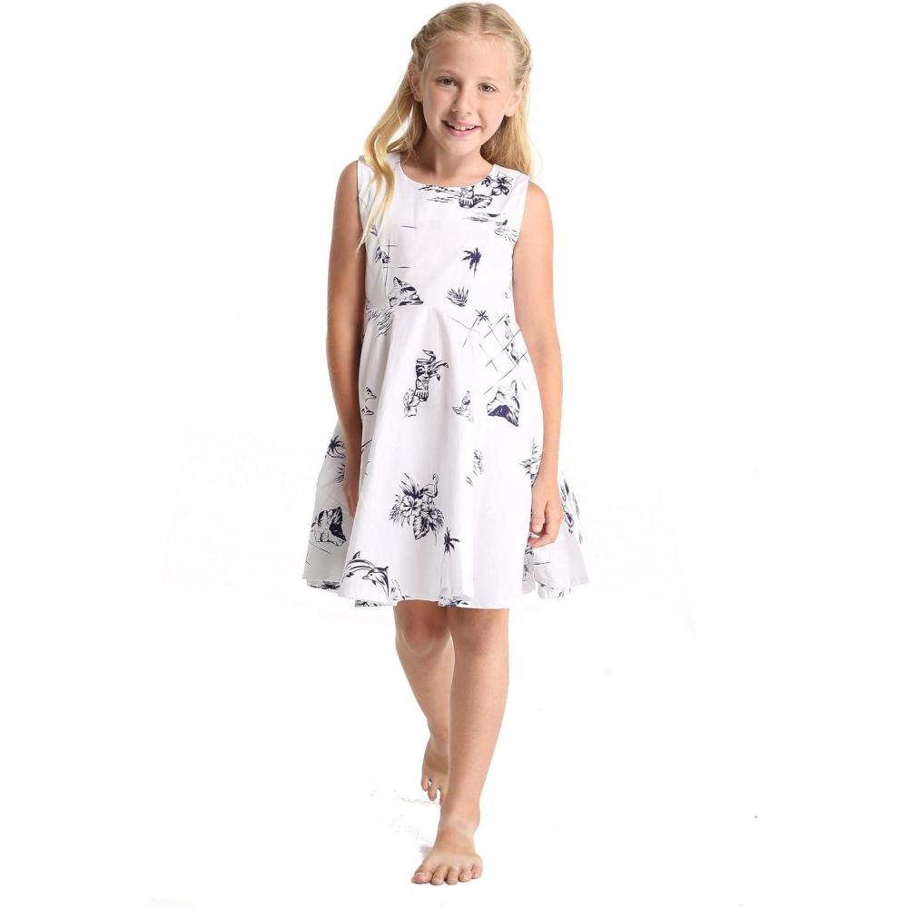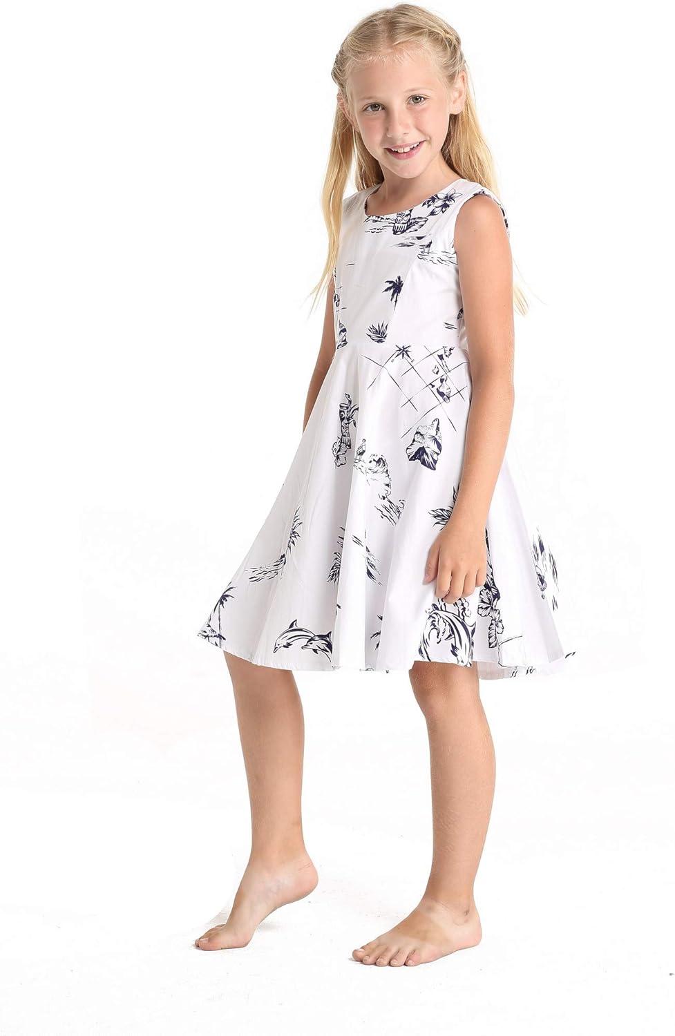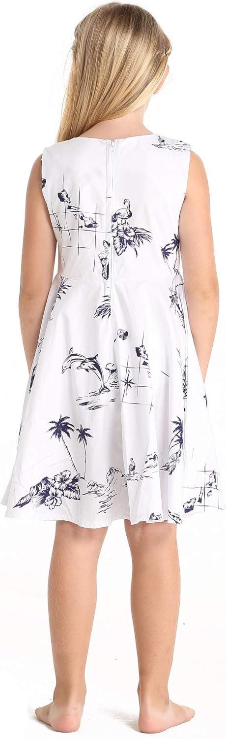 Girl Hawaiian Vintage Fit and Flare Dress in Classic Map White Flamingo(Classic Map White Flamingo)