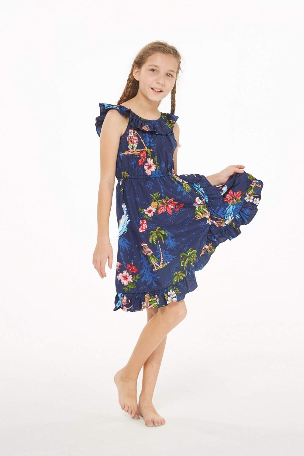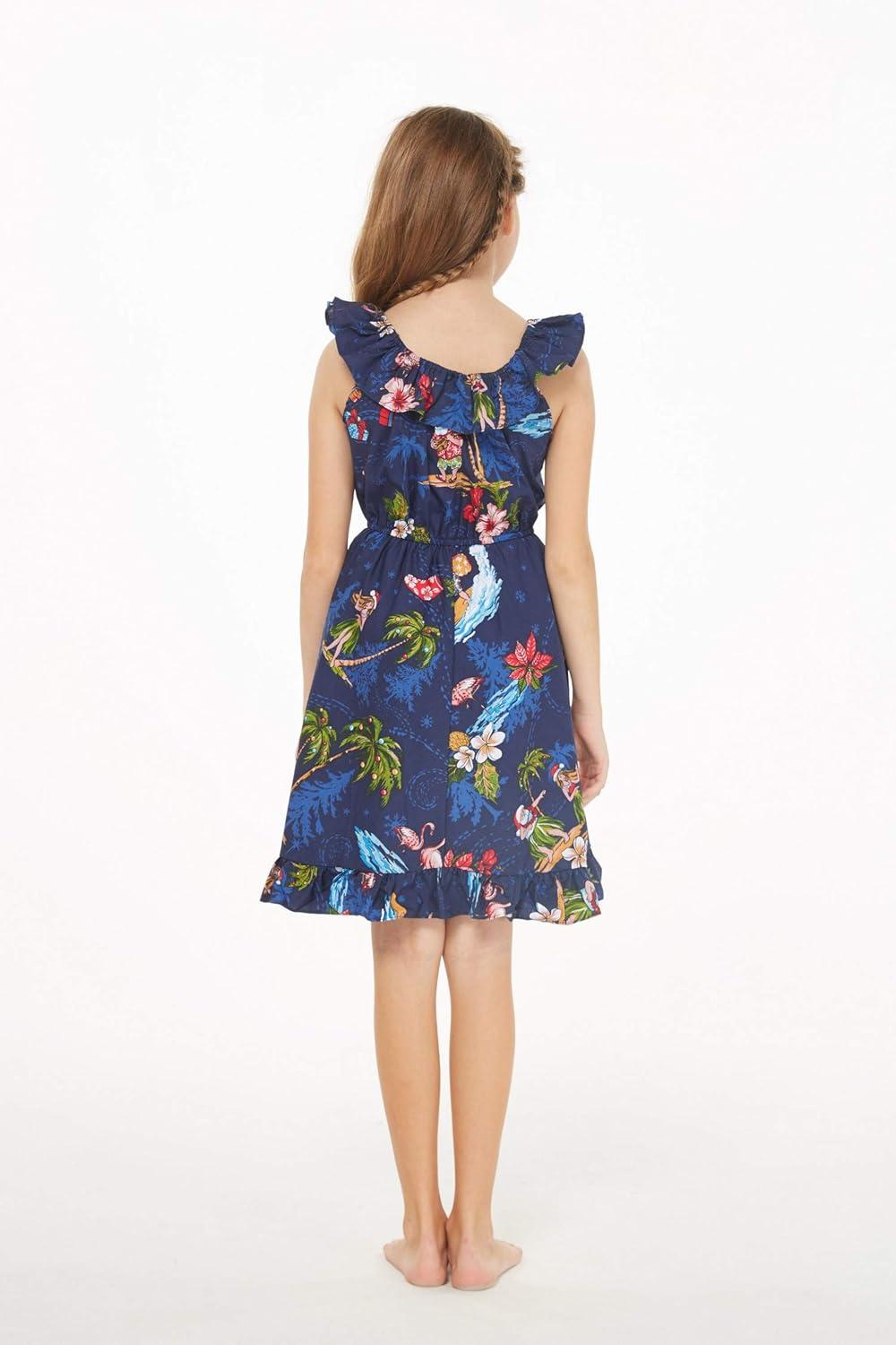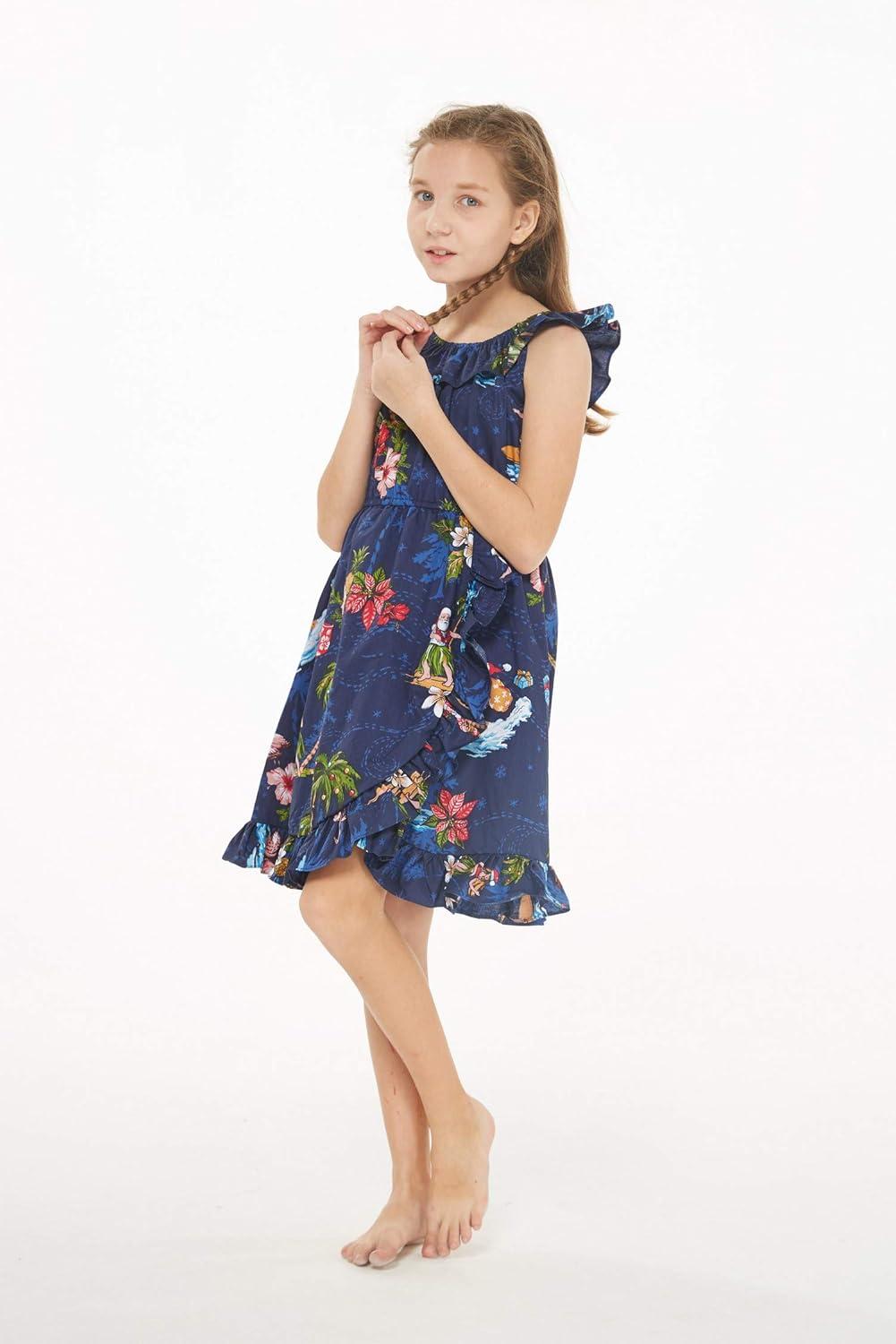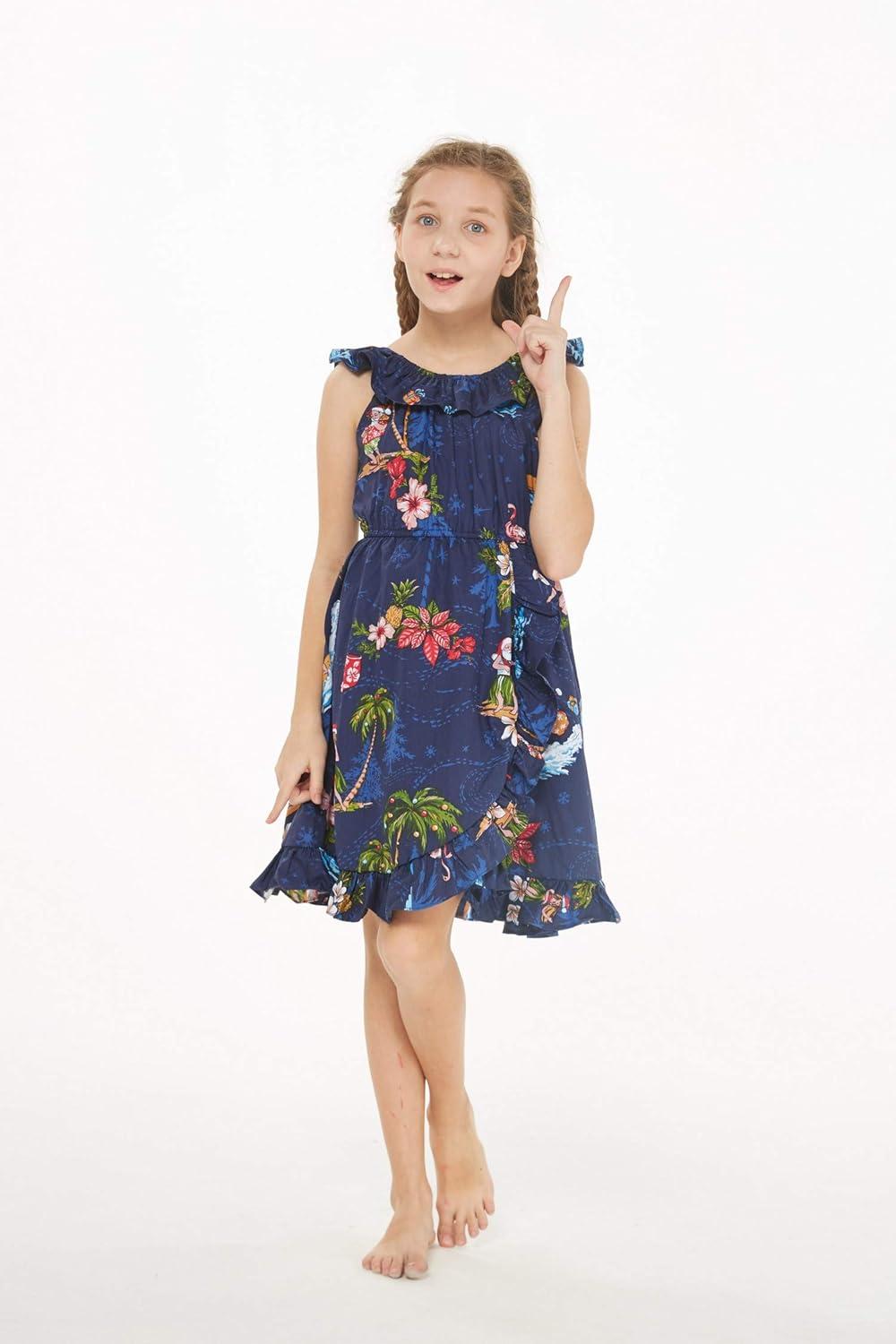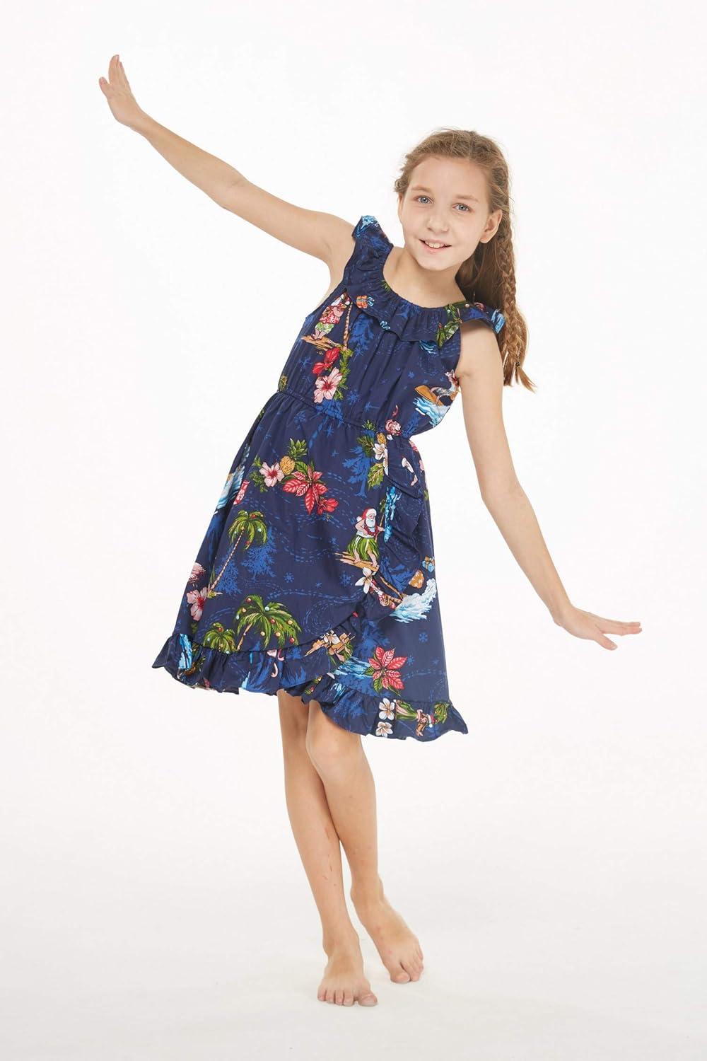 Girl Luau Wrap Ruffle Dress in Christmas Santa in Hawaii Red(Christmas Santa in Hawaii Navy)