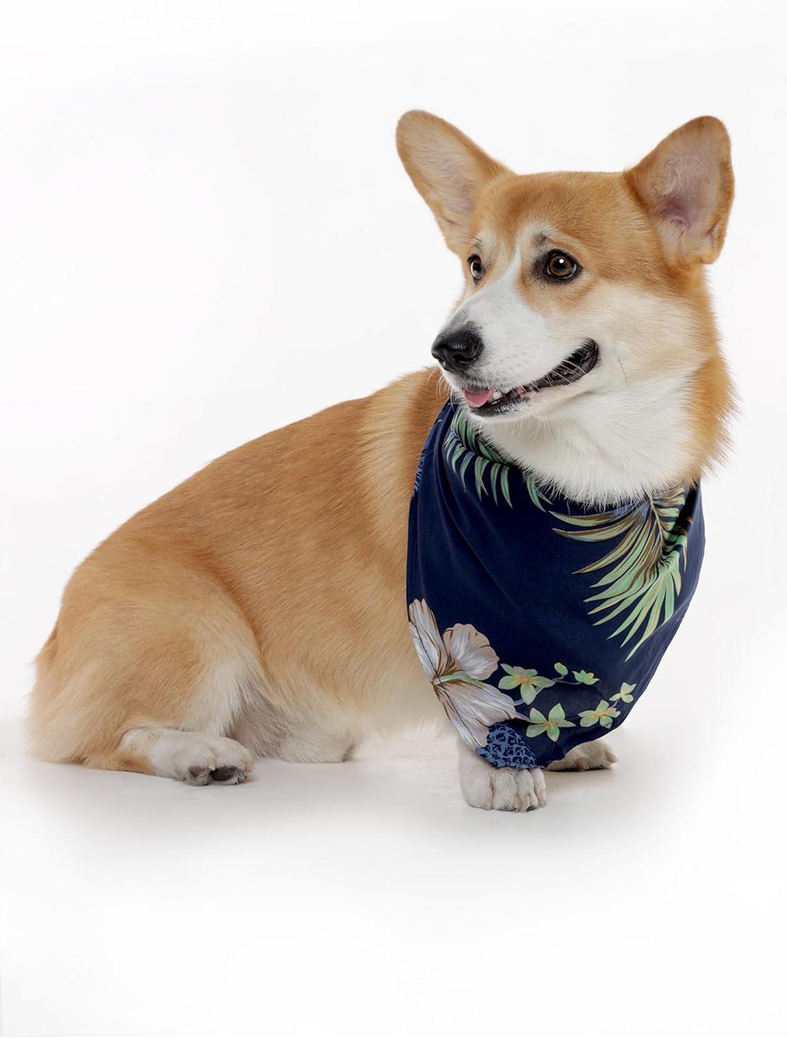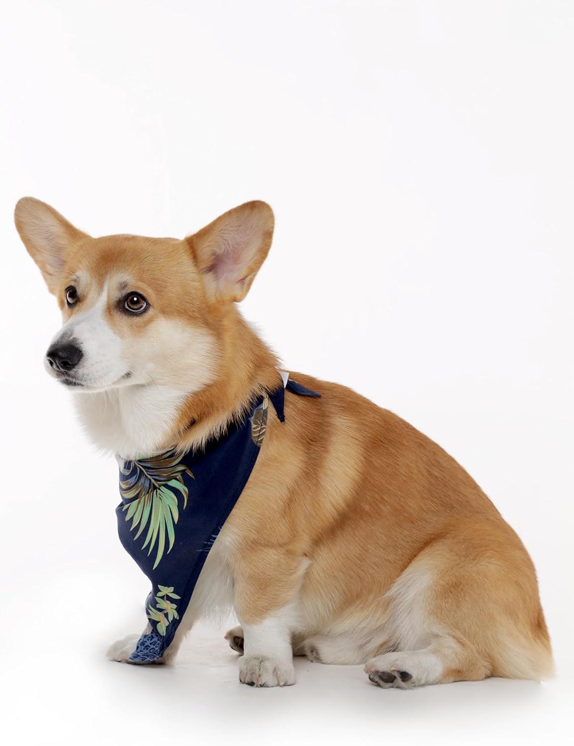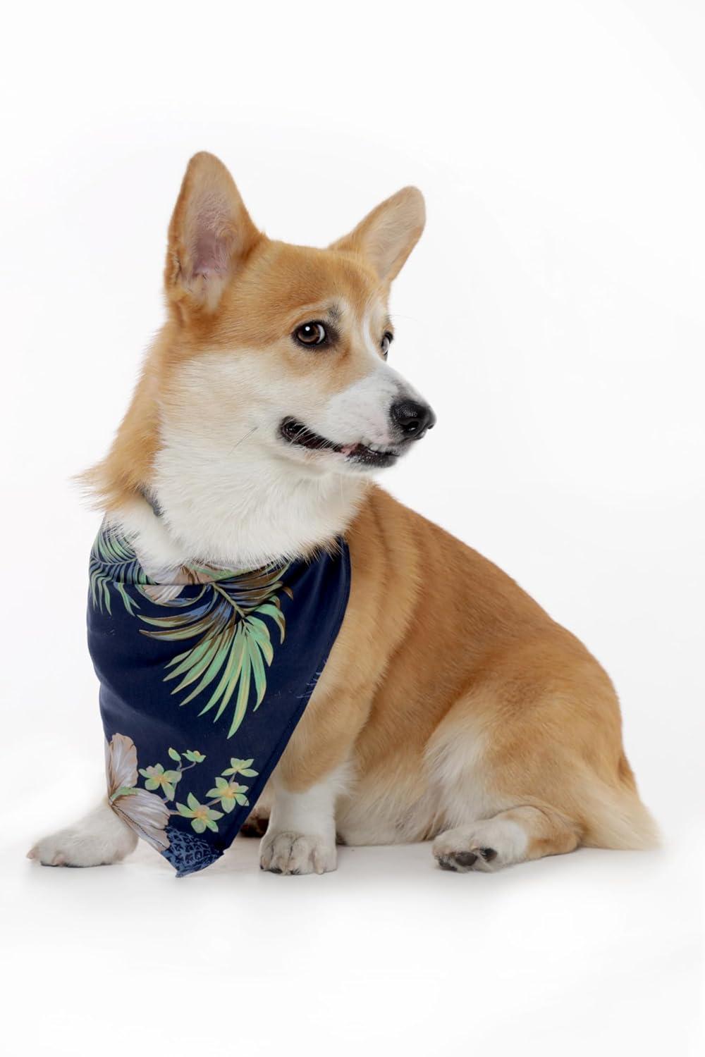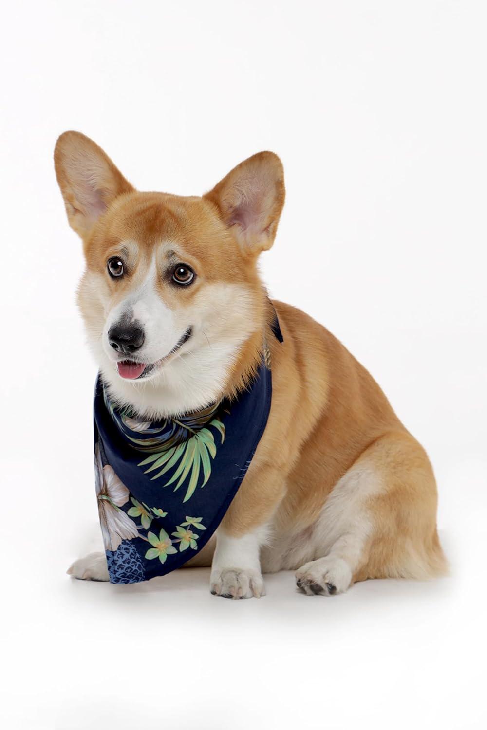 Hawaiian Matching Pattern Dog Bandana in Pineapple Garden Navy Size Large(Bandana in Pineapple Garden Navy)