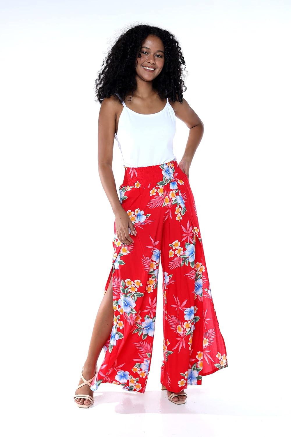 Lady High Slit Wide Leg Pants in Hibiscus(Hibiscus Red)