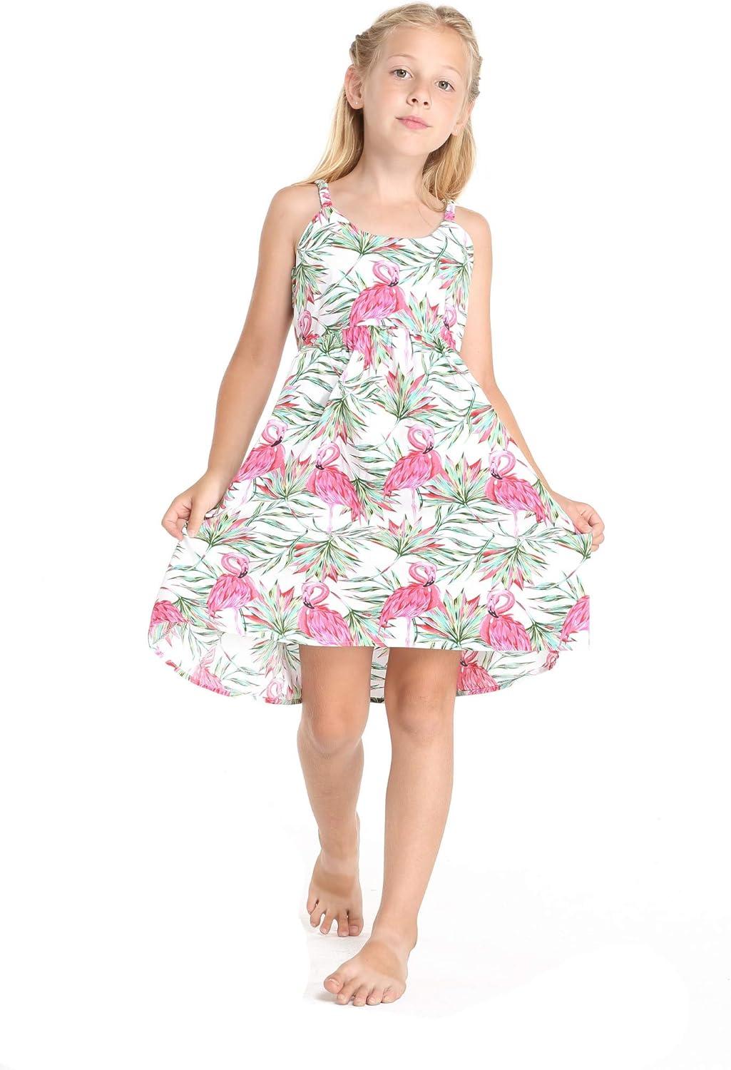Made in Hawaii Luau Elastic Strap Dress in Flamingo Cream(Flamingo in Love White)