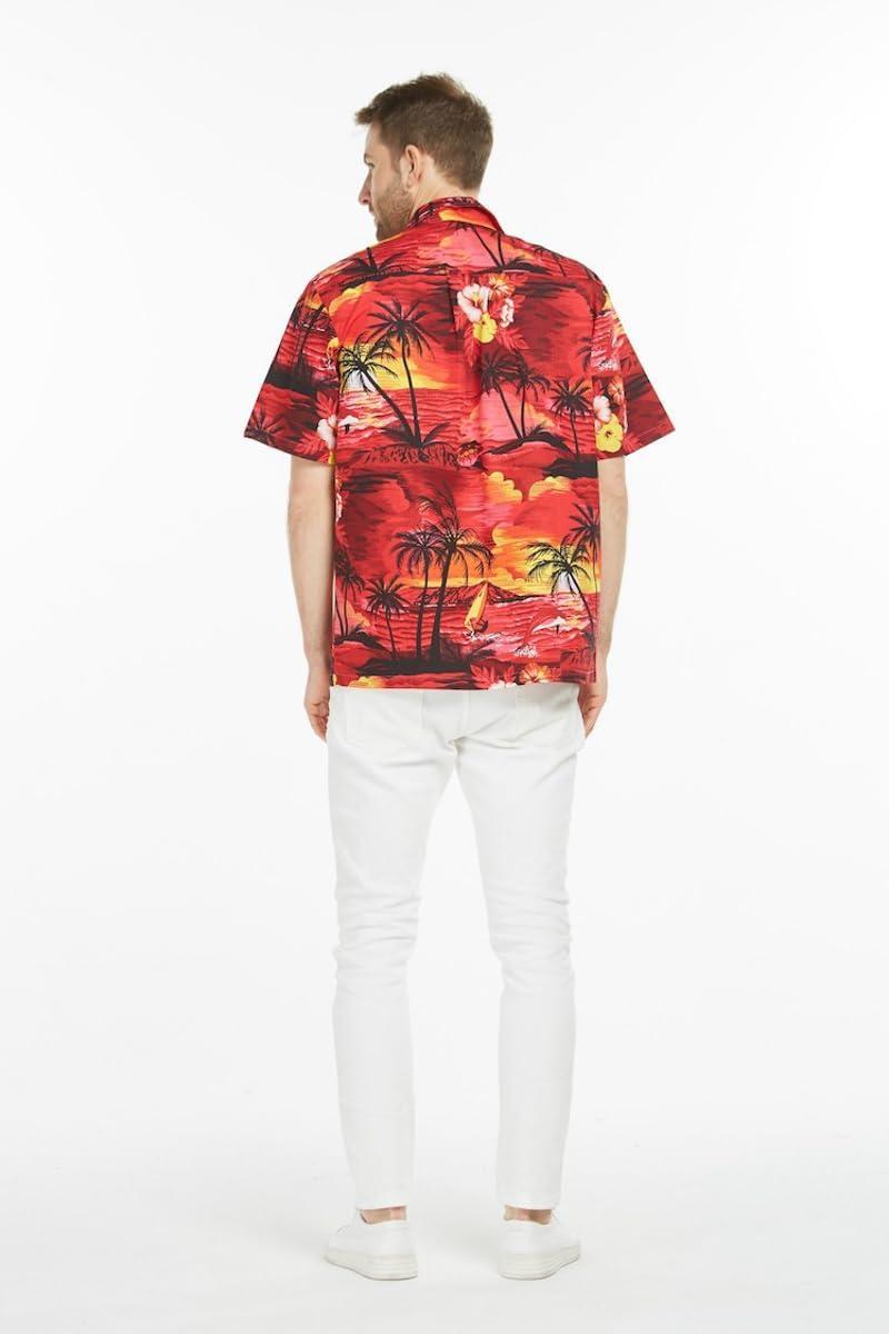 Matchable Couple Hawaiian Luau Men Shirt or Women Tank Dress in Sunset Red(Men Sunset Red)
