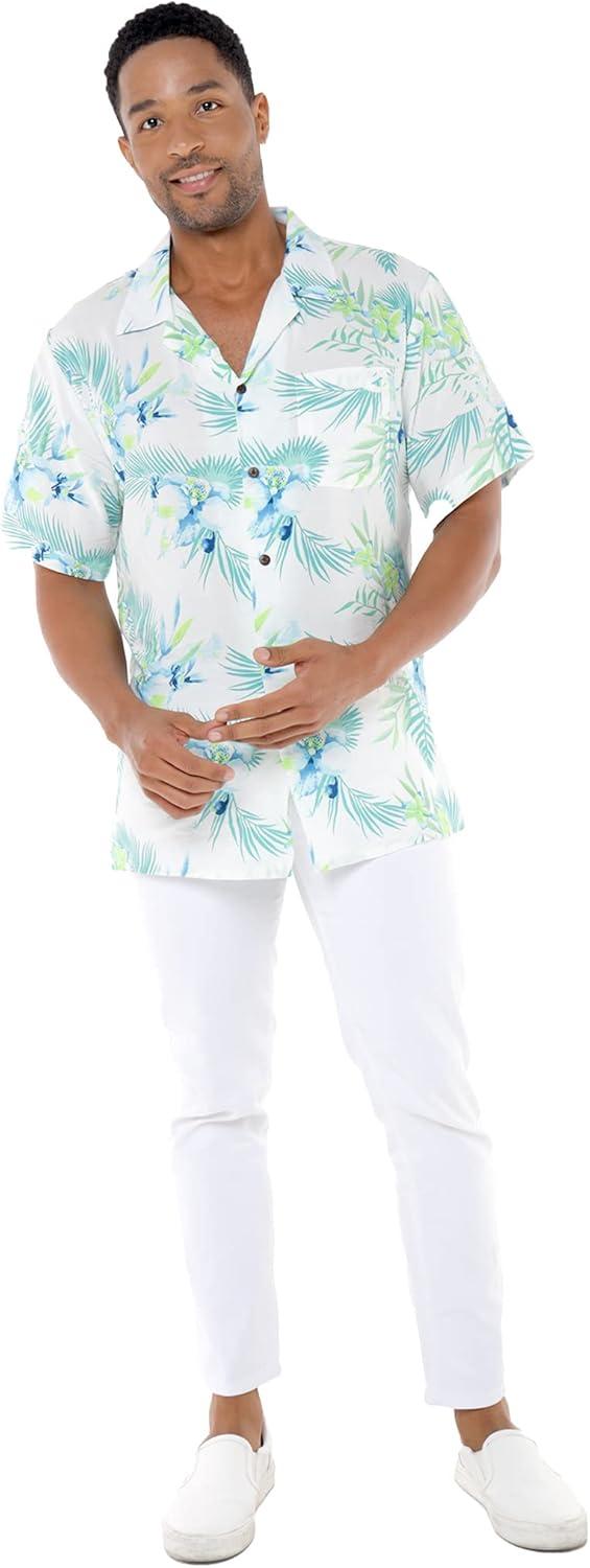 Matchable Couple Hawaiian Luau Shirt or Wrap Ruffle Dress in Day Dream Bloom(Men Day Dream Bloom)