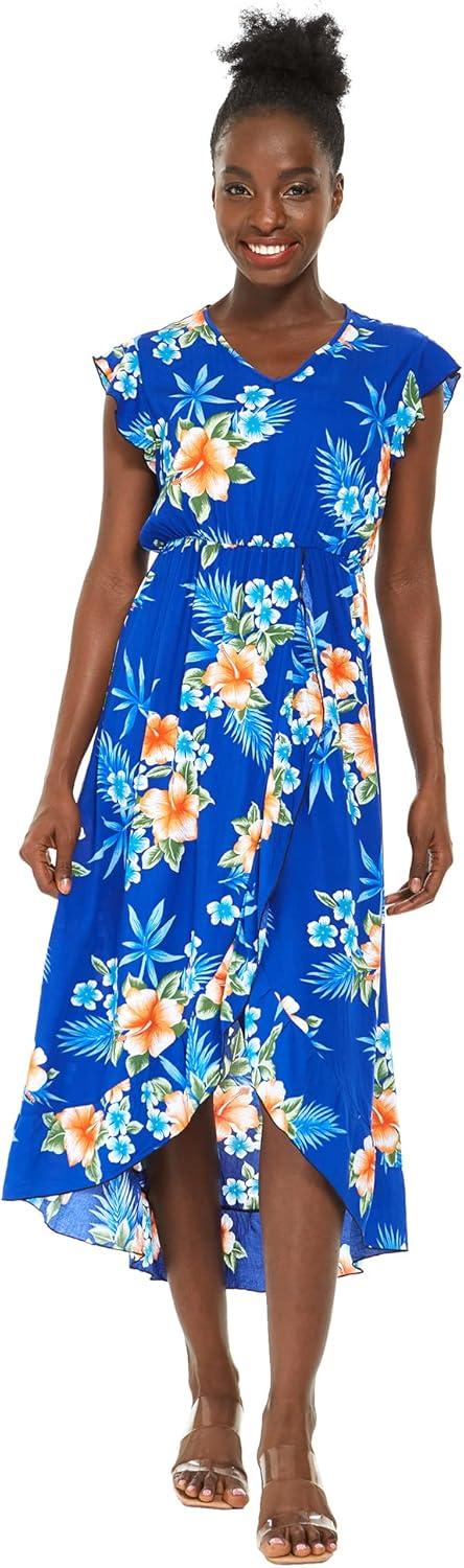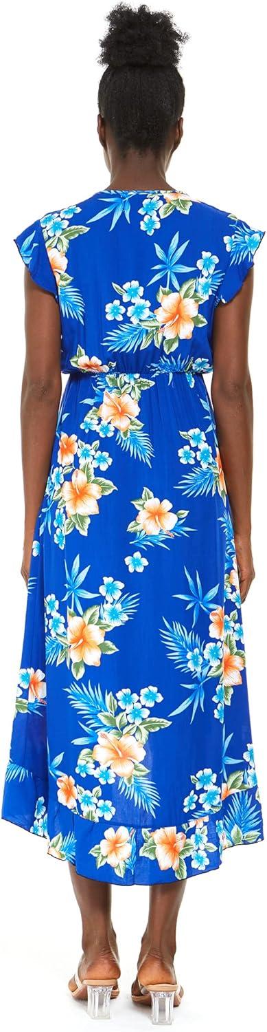 Matchable Couple Hawaiian Luau Shirt or Wrap Ruffle Dress in Hibiscus Blue(Women Hibiscus Blue)
