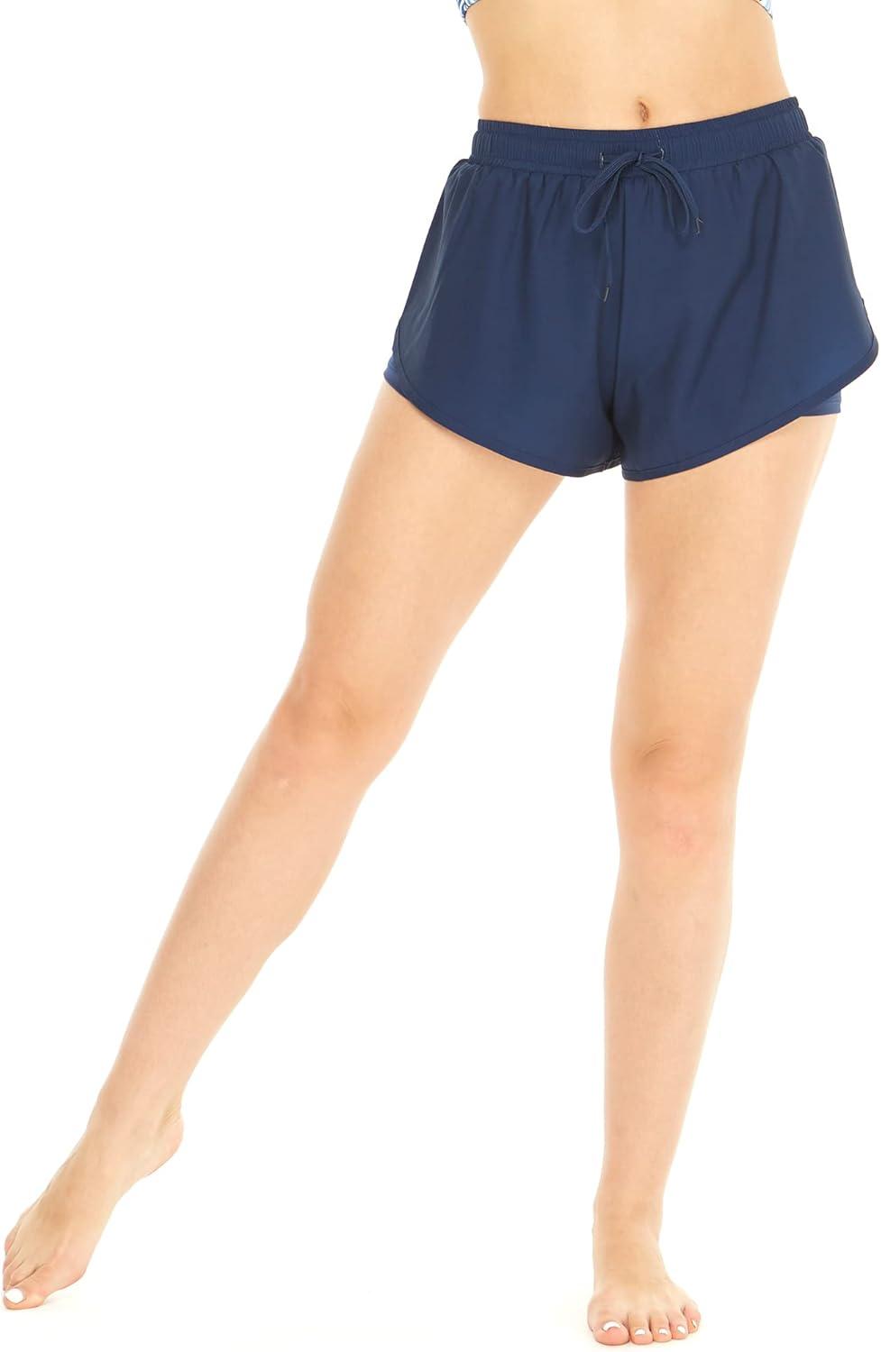 imageWomens Athletic Sportswear Tennis Shorts with Builtin Tights in Solid ColorsBlue Green