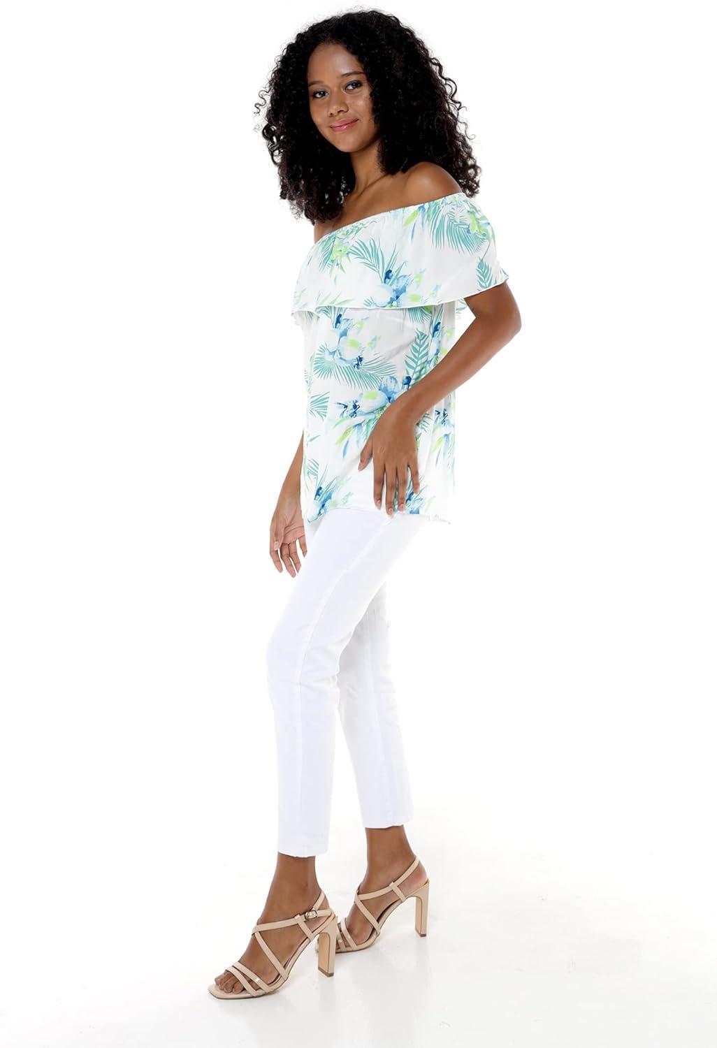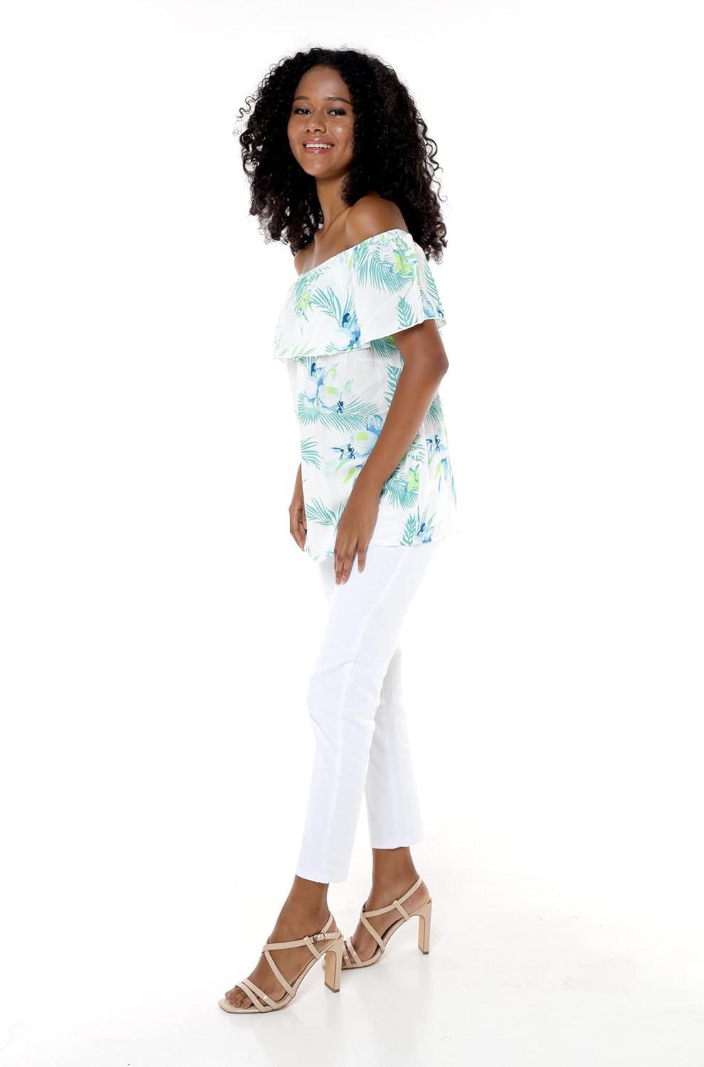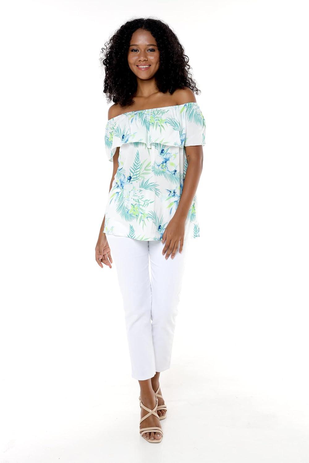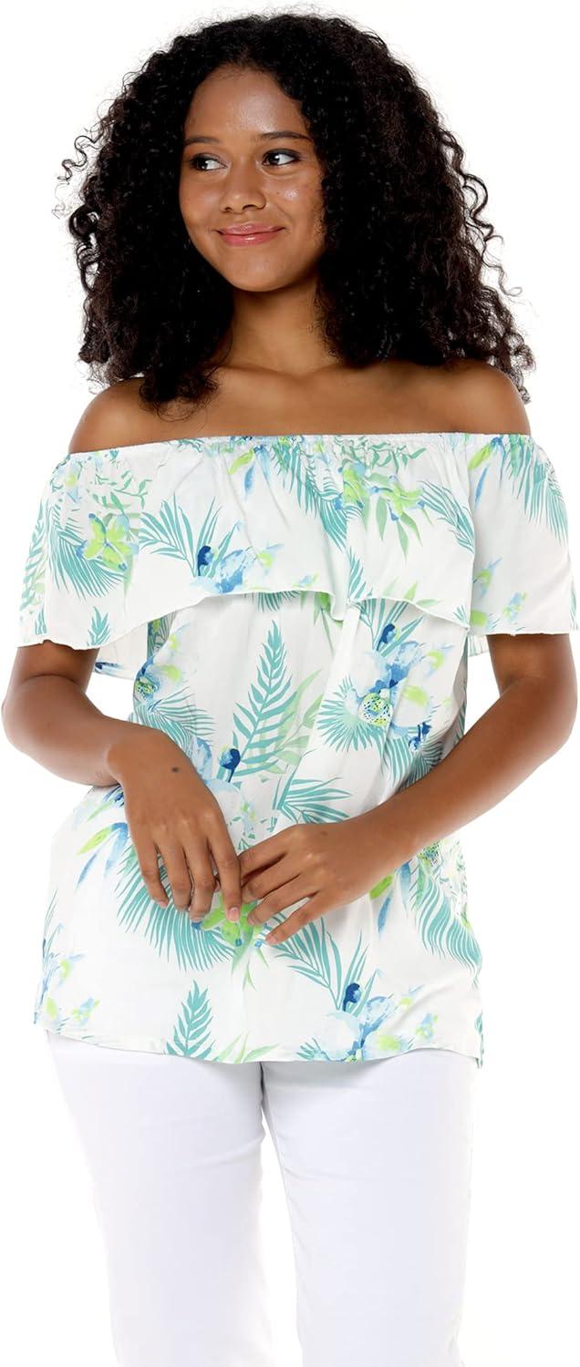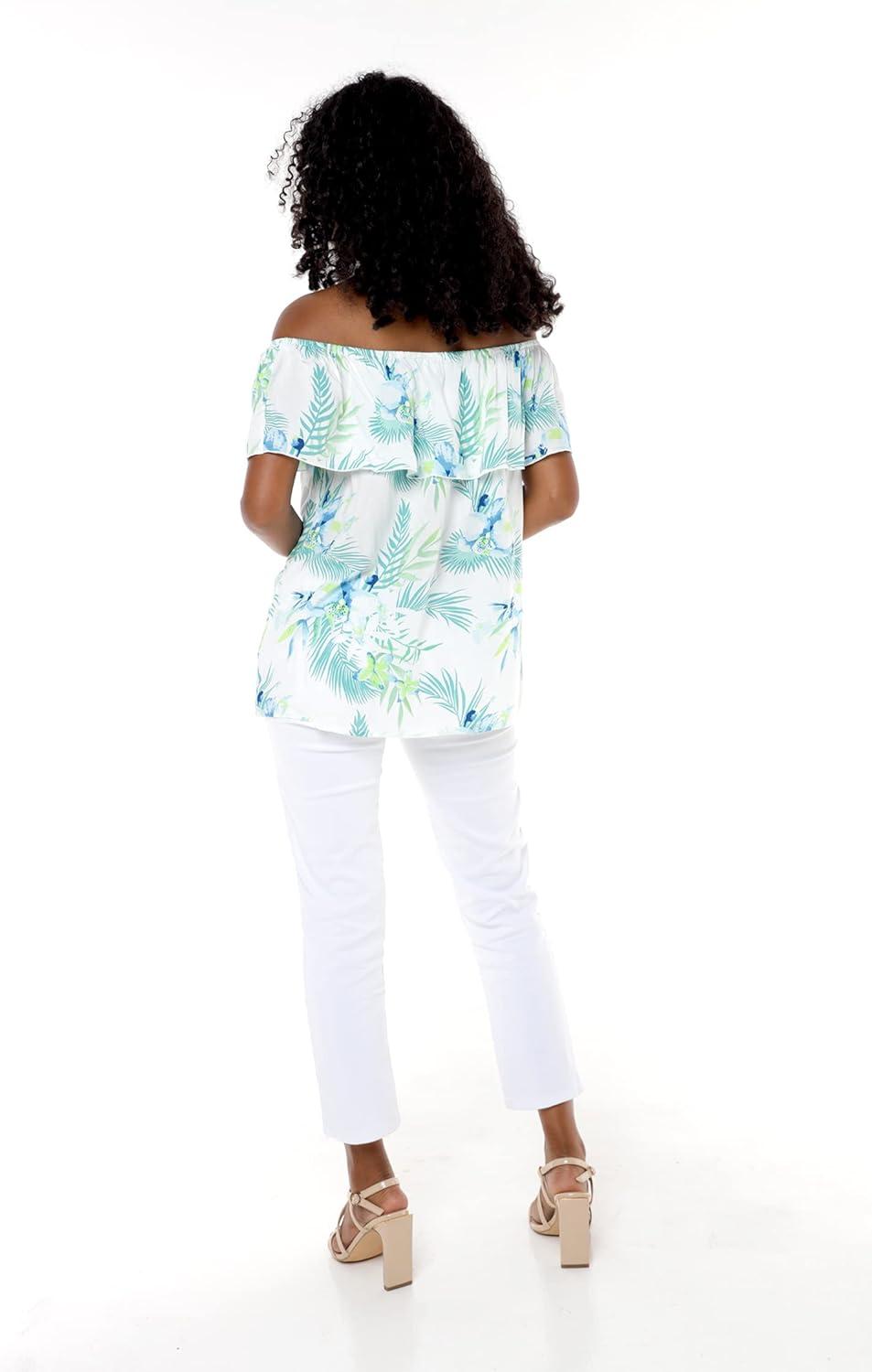 Women’s Hawaiian Off-Shoulder Ruffle Muumuu Top in Orchid Breeze(Orchid Breeze White)
