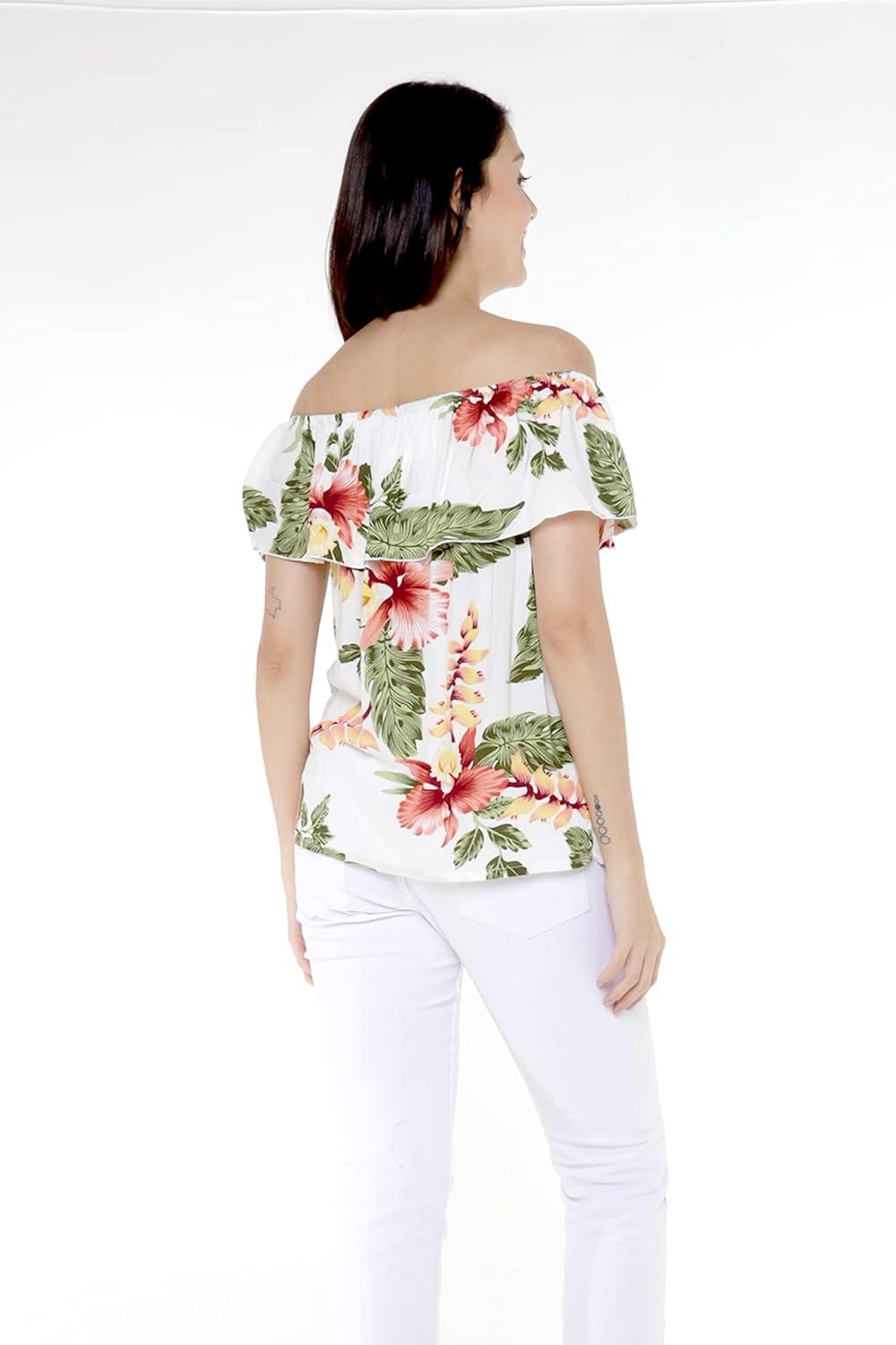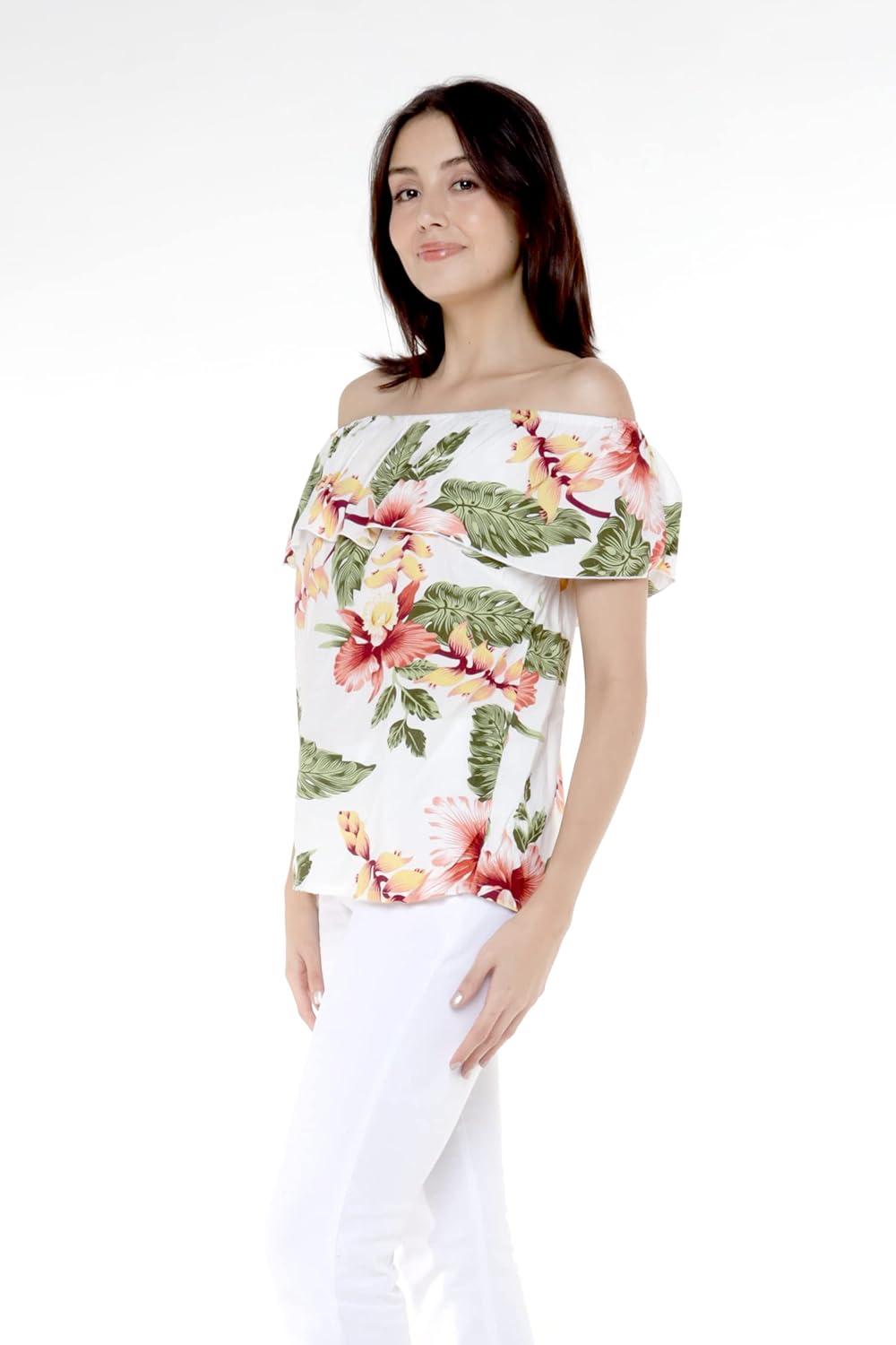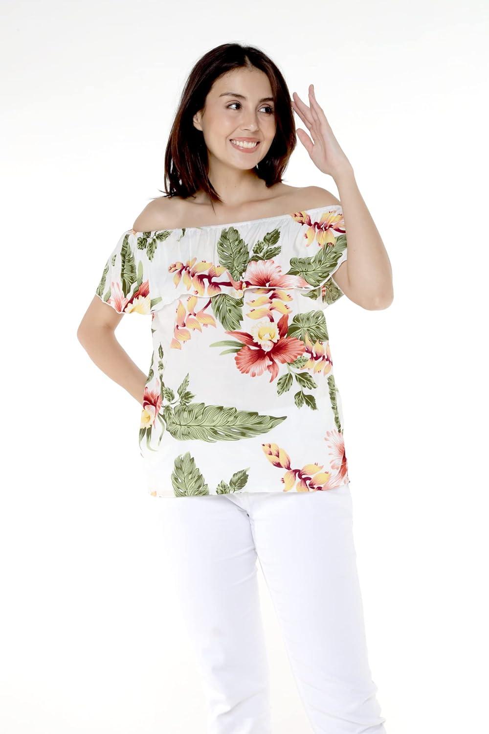Women’s Hawaiian Off-Shoulder Ruffle Muumuu Top in Rafelsia(Cream Rafelsia)