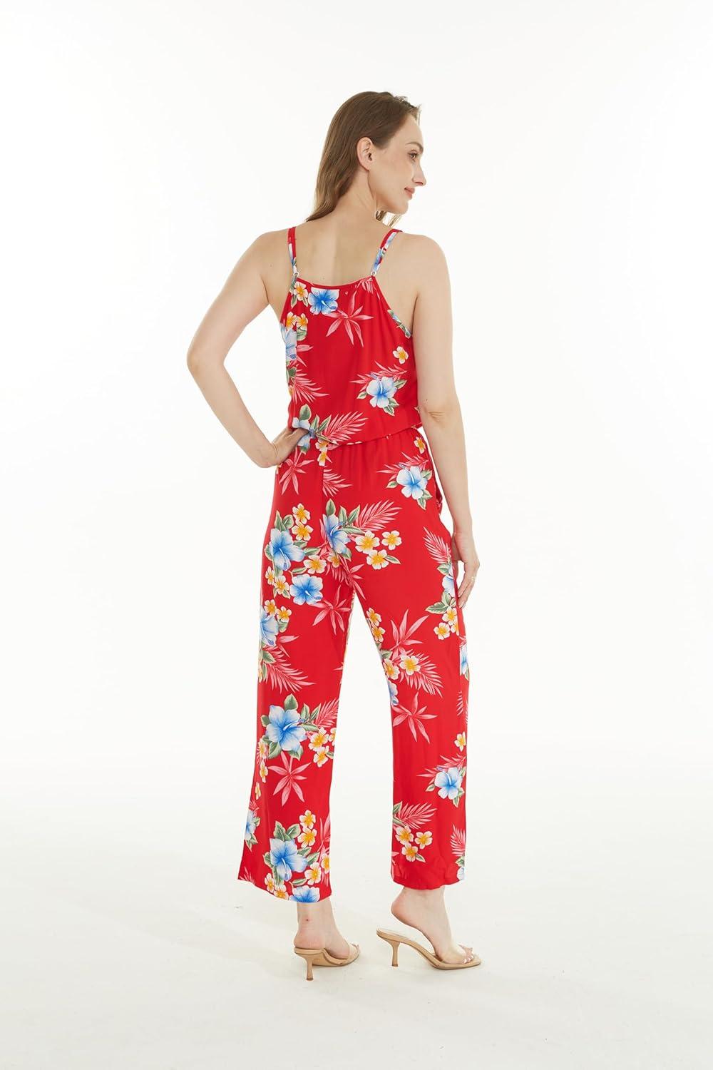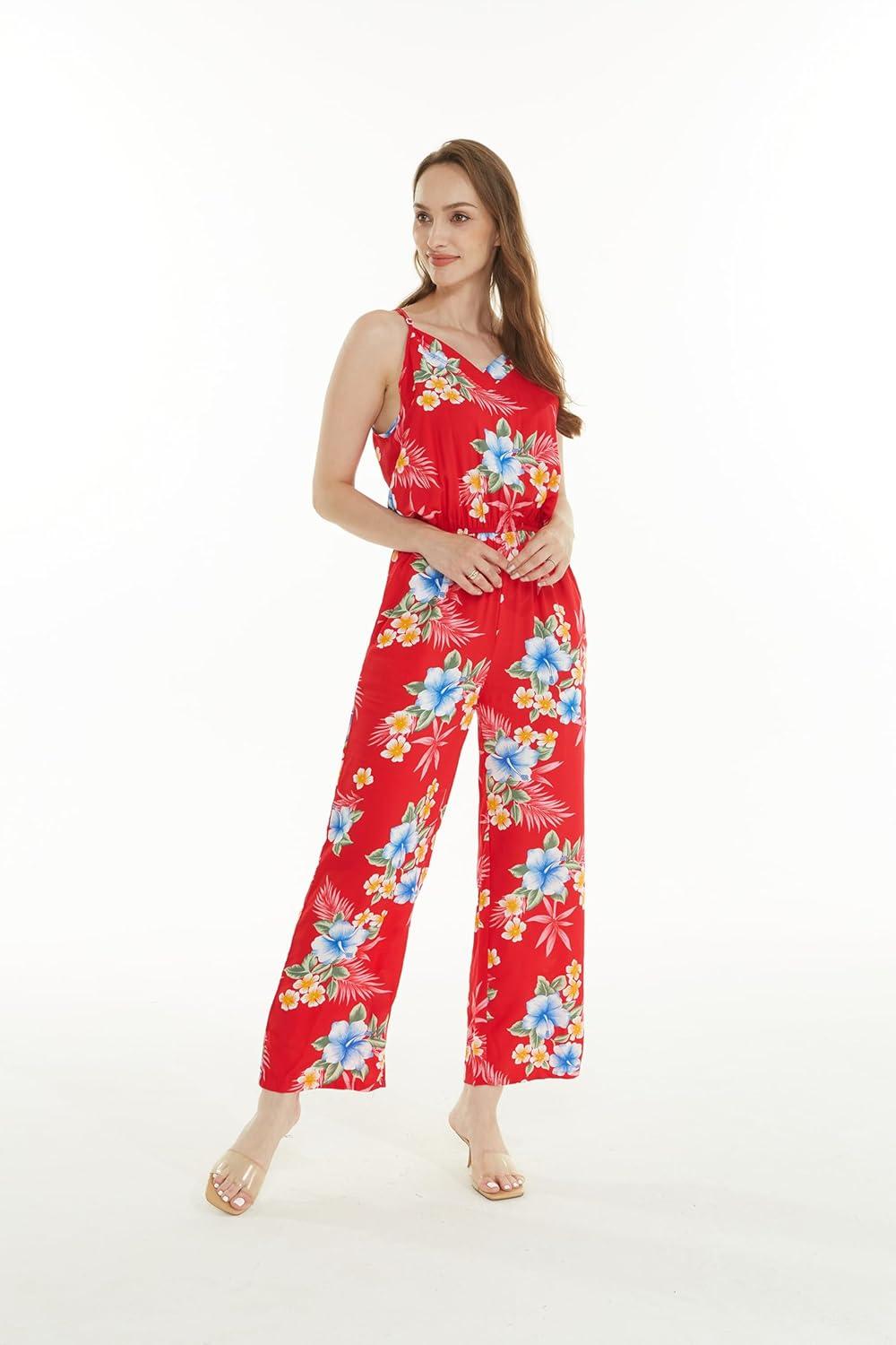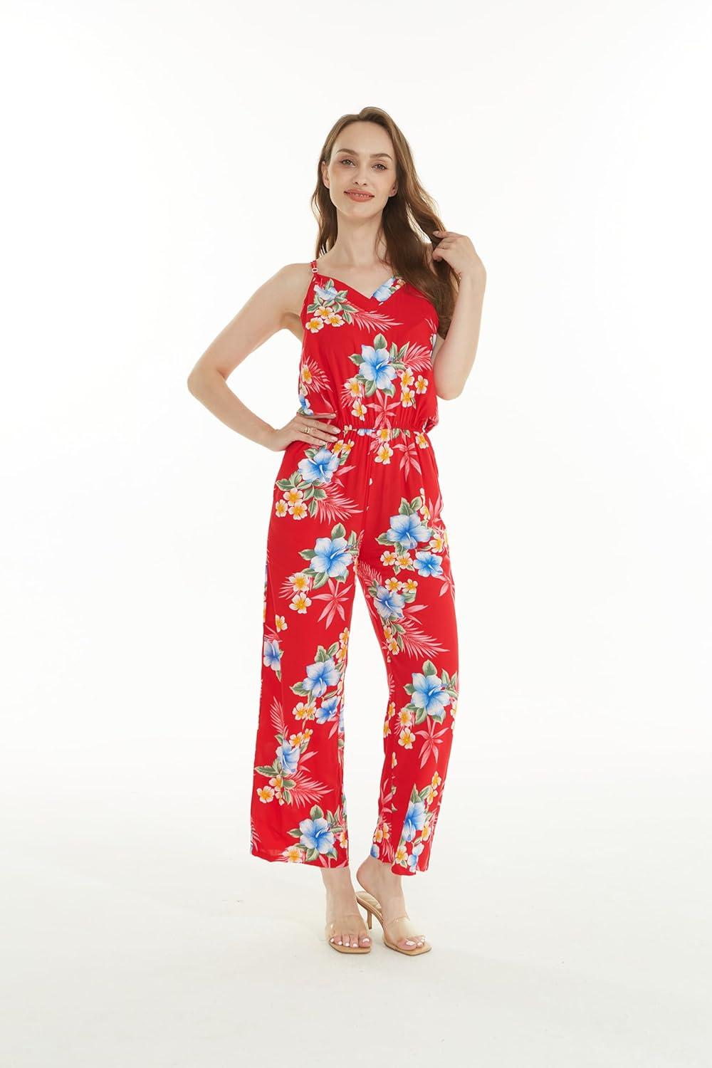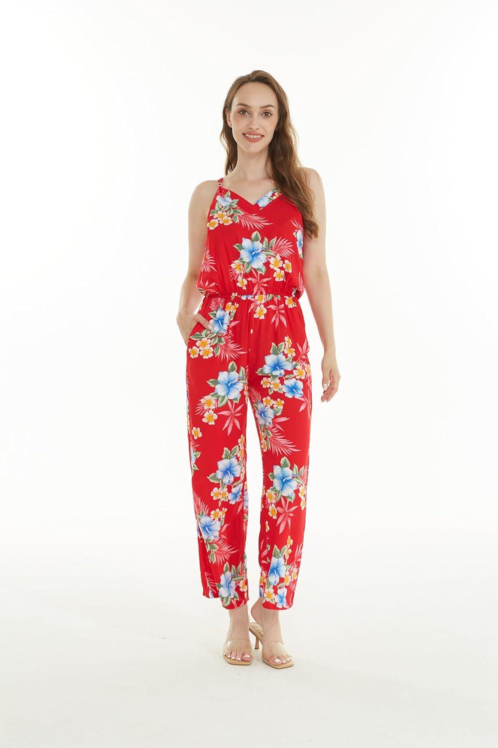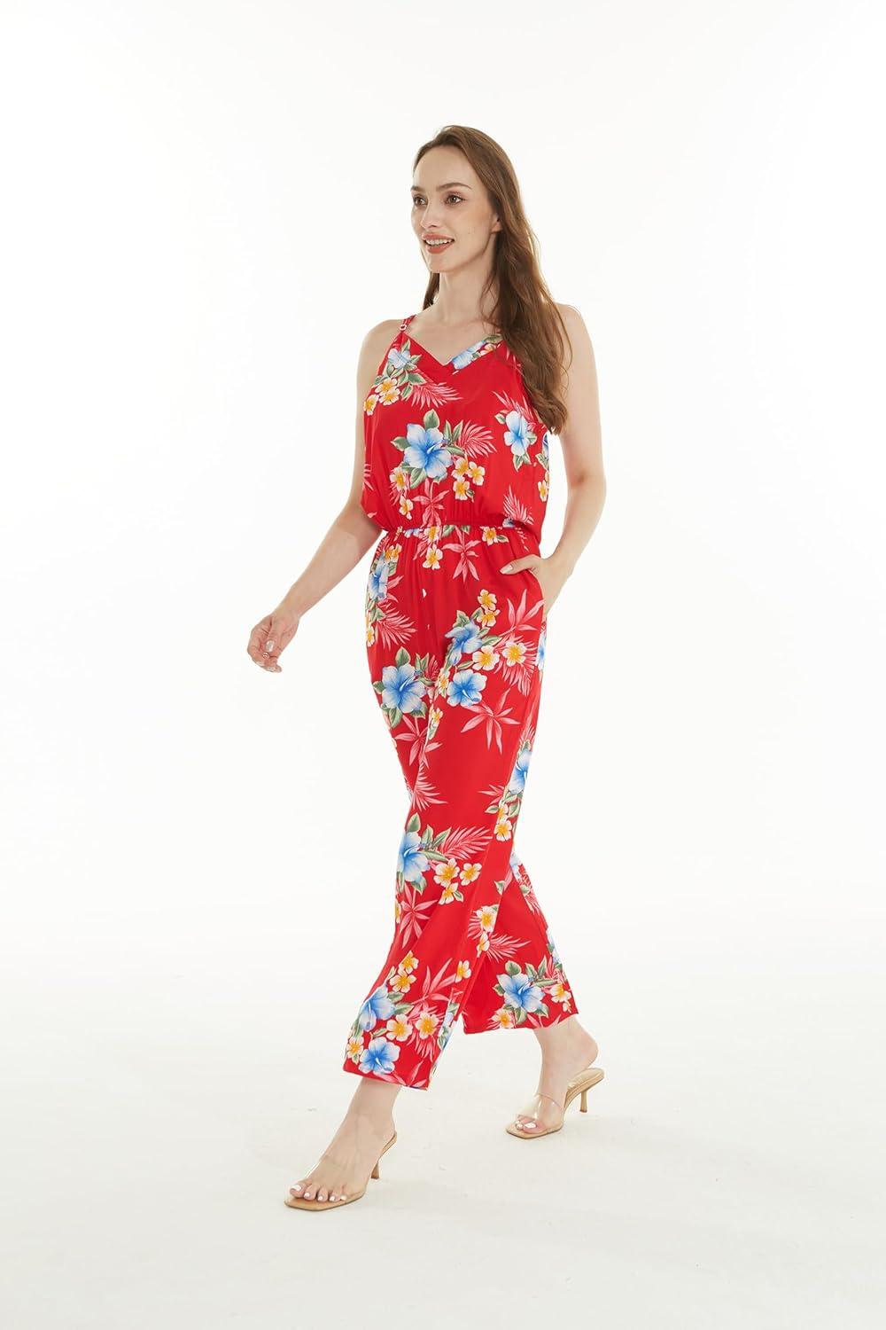 Women’s Hawaiian Strap V with Pockets Jumpsuit in Hibiscus Blue(Hibiscus Red)
