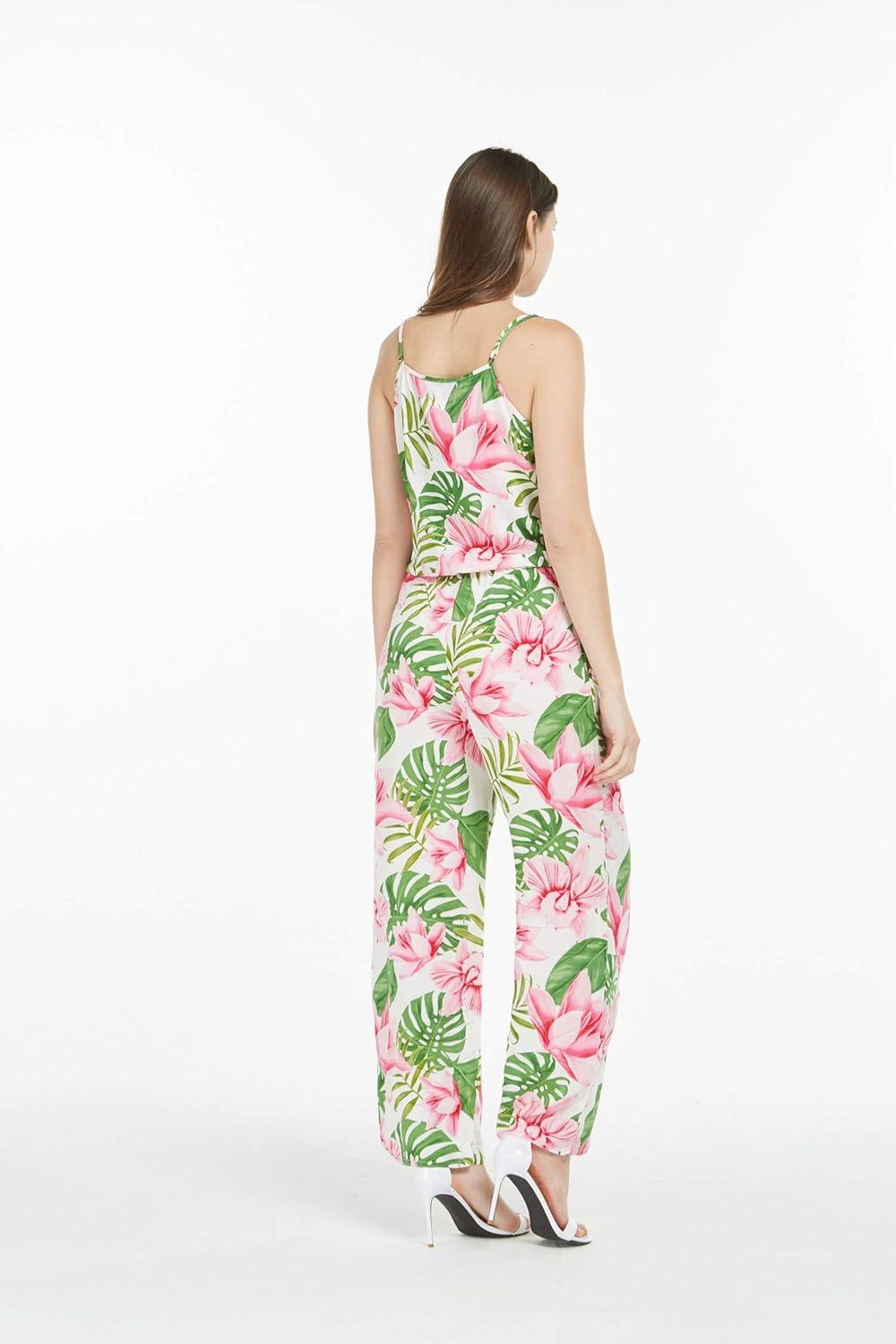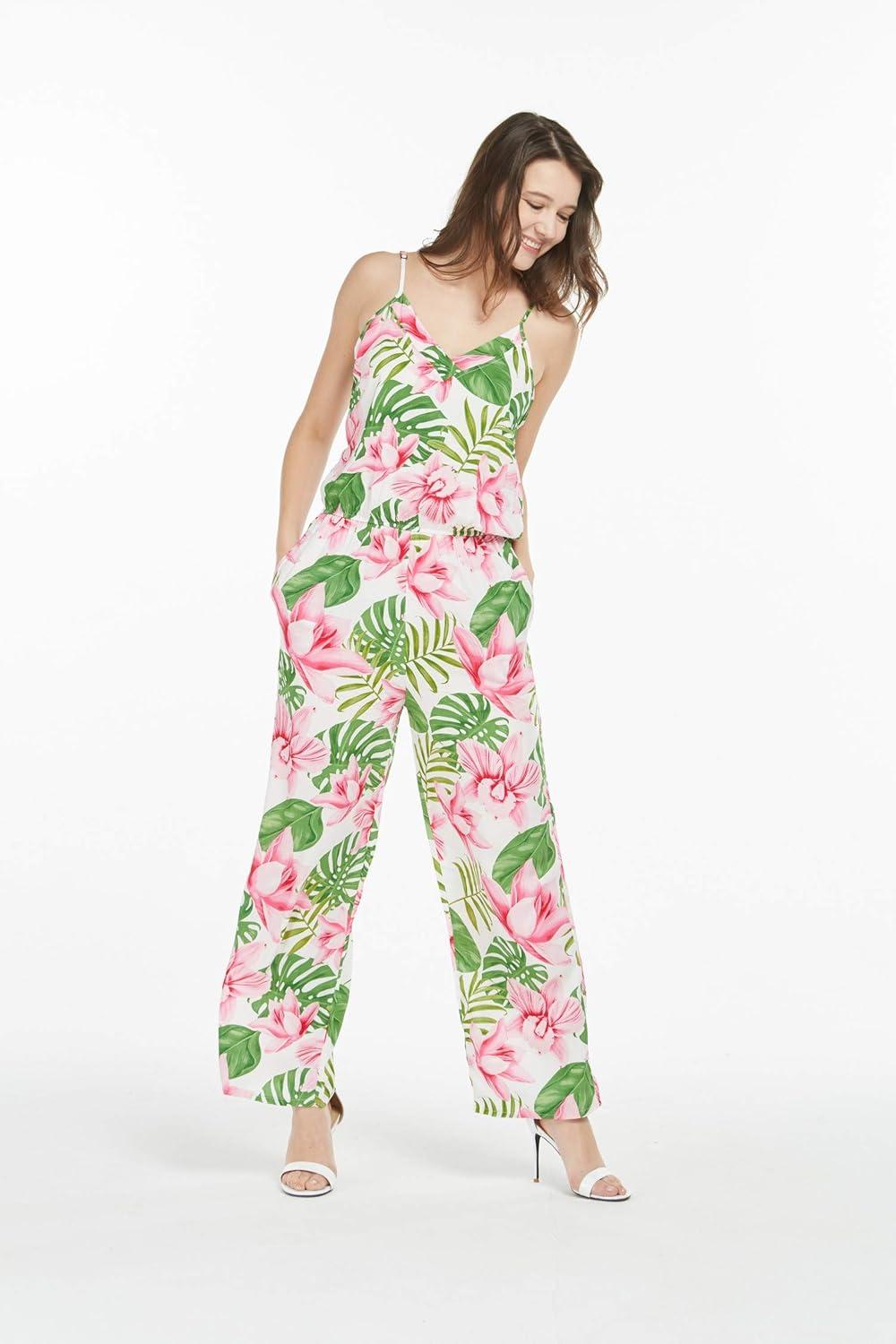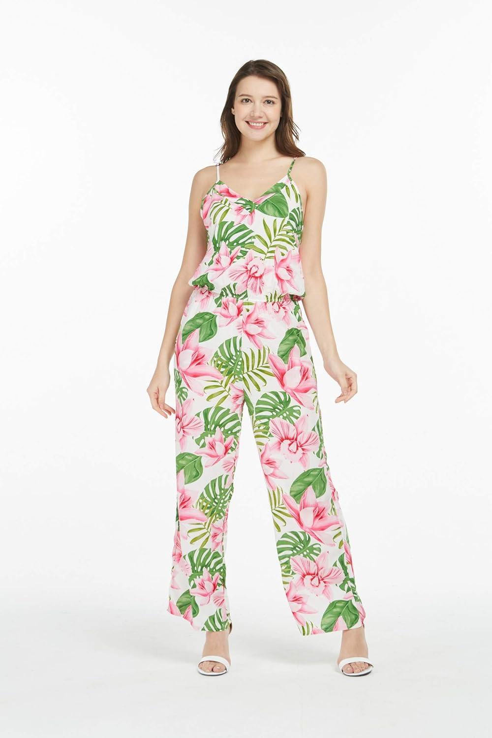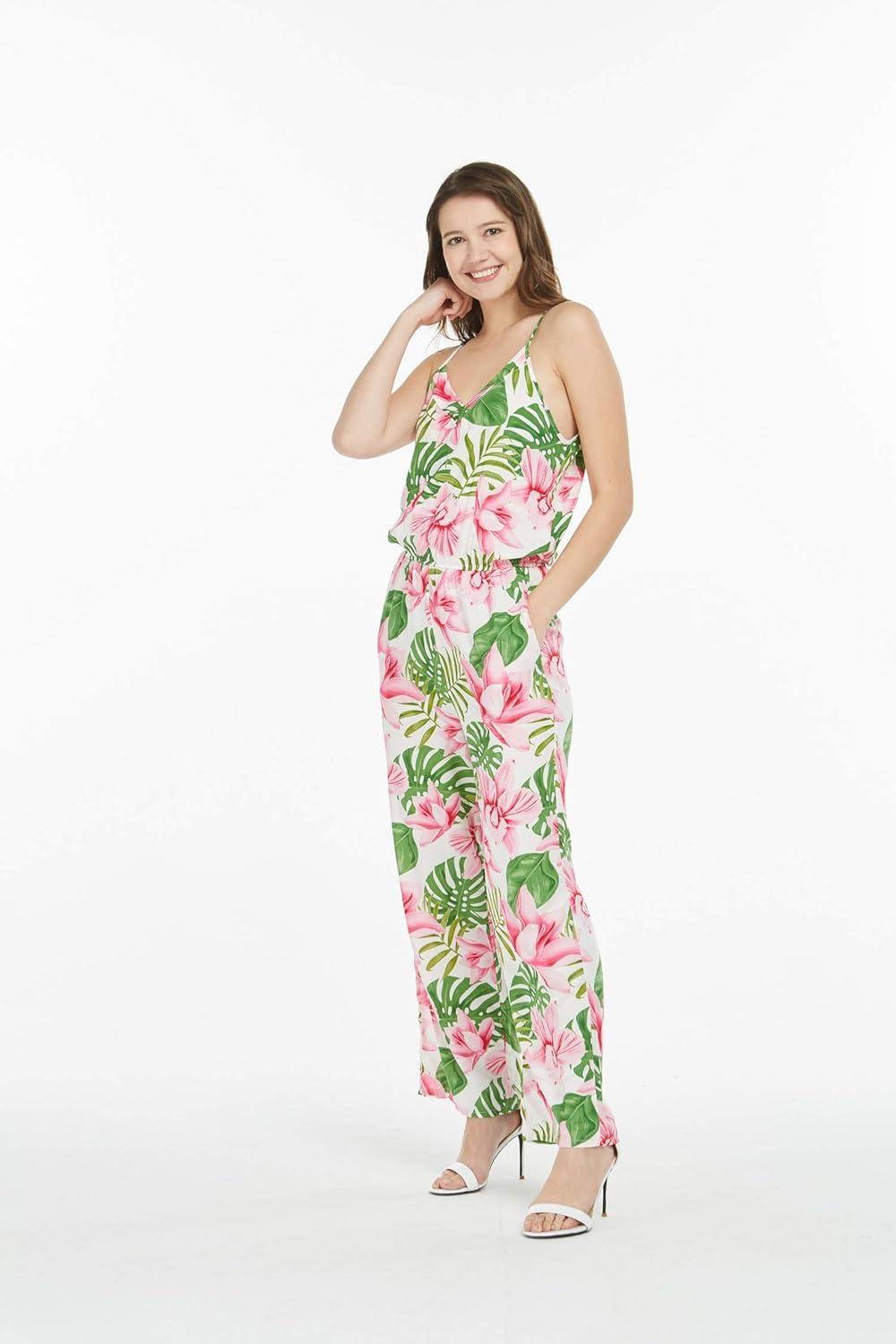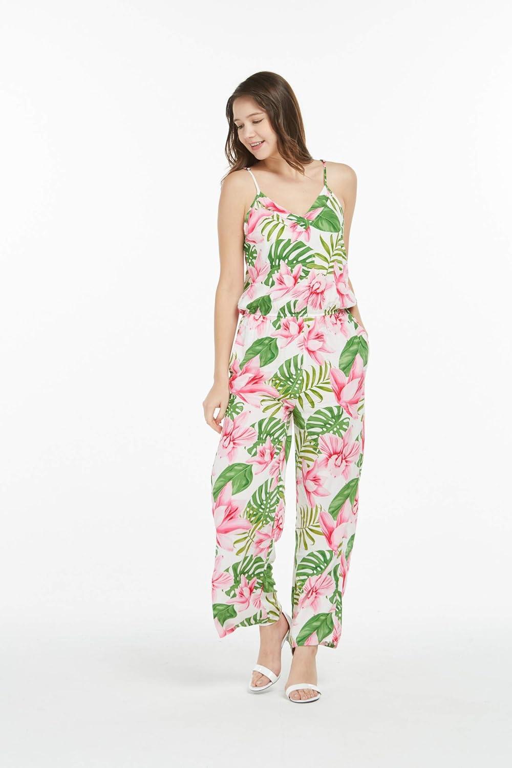 Women’s Hawaiian Strap V with Pockets Jumpsuit in Lotus and Orchid(Lotus and Orchid)