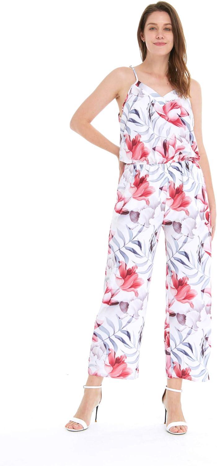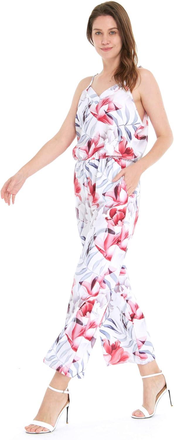 Women’s Hawaiian Strap V with Pockets Jumpsuit in Lotus and Orchid(Misty Lotus White)