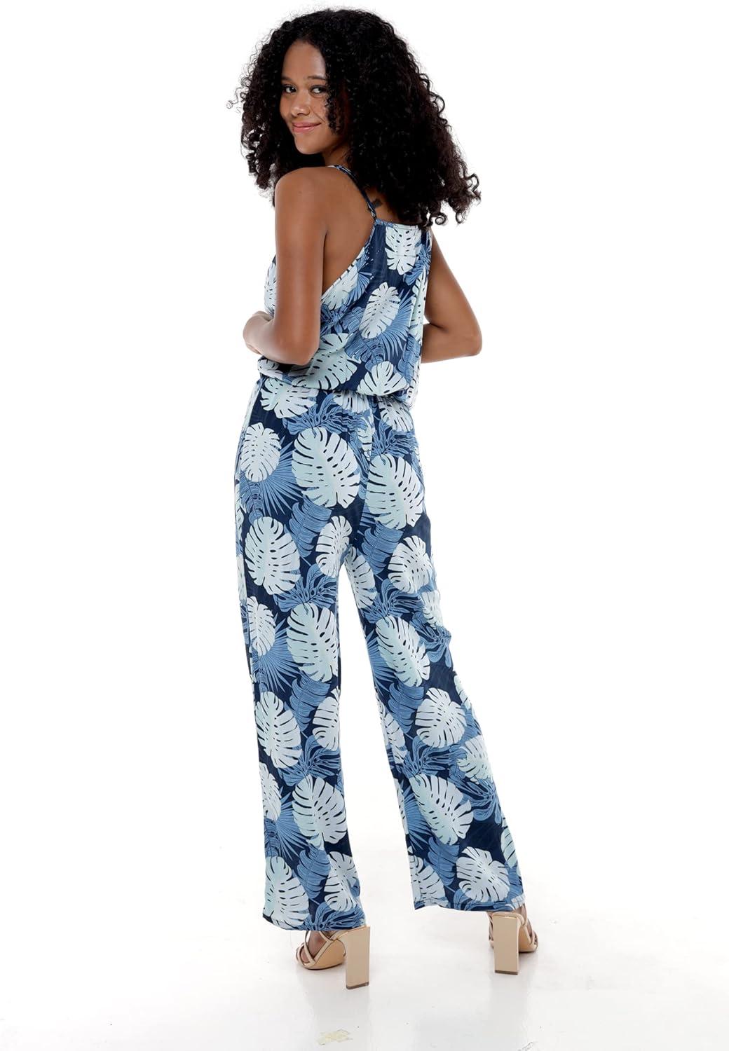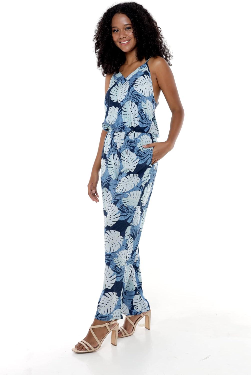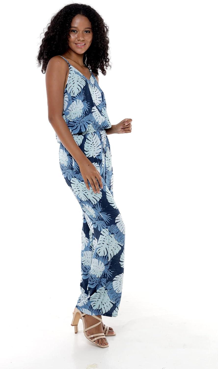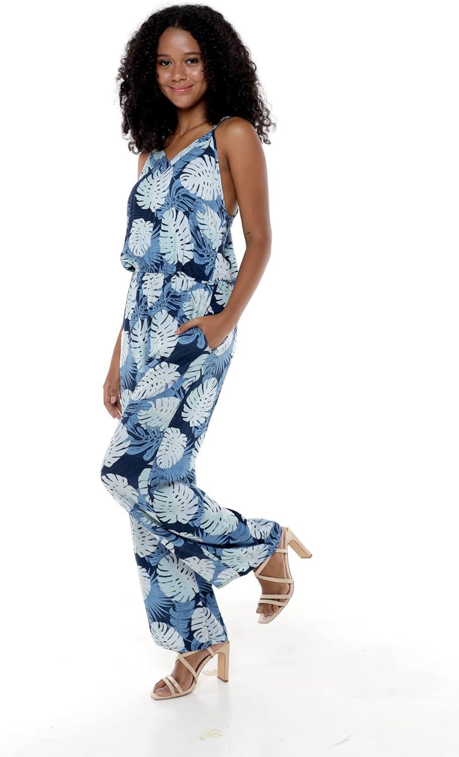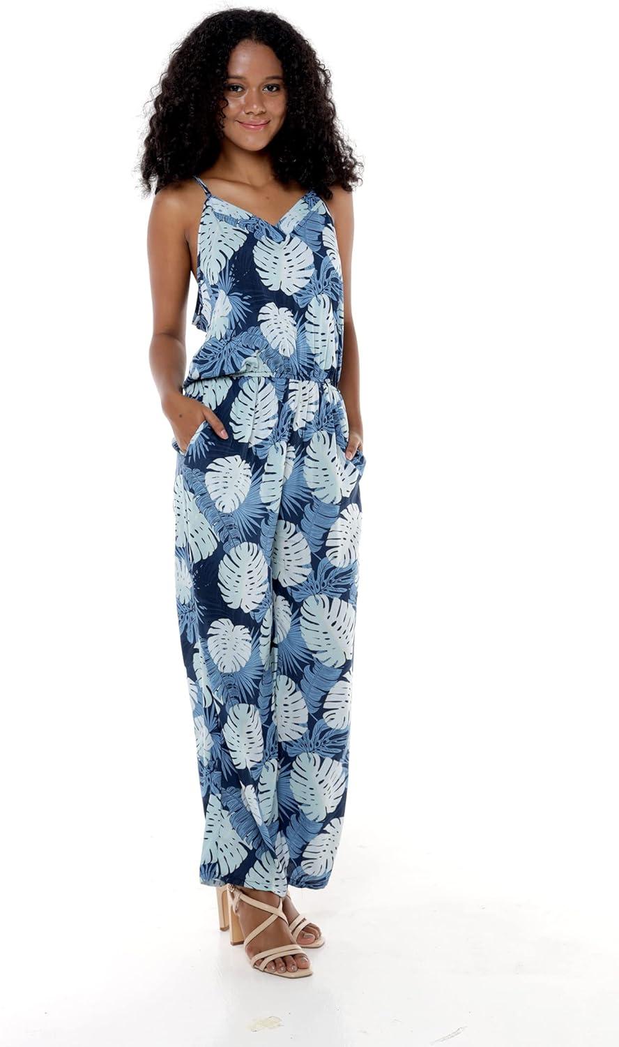 Women’s Hawaiian Strap V with Pockets Jumpsuit in Pacific Palm Navy(Pacific Palm Navy)