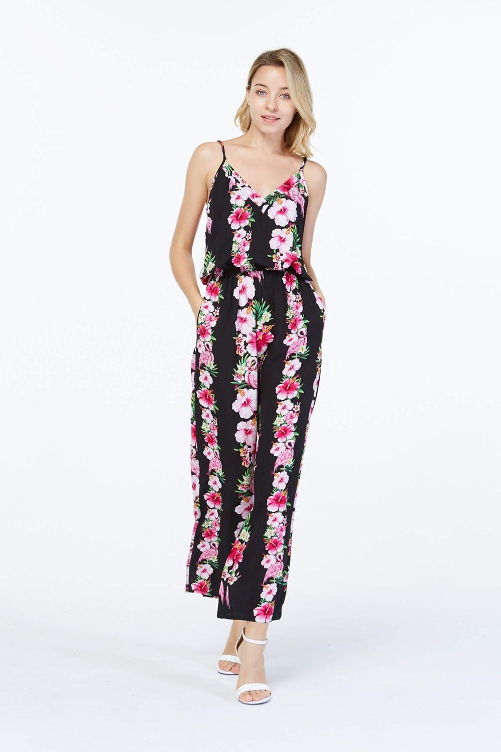 Be the first to review “Women’s Hawaiian Strap V with Pockets Jumpsuit in Pink Hibiscus Vine(Pink Black Hibiscus Vine)”