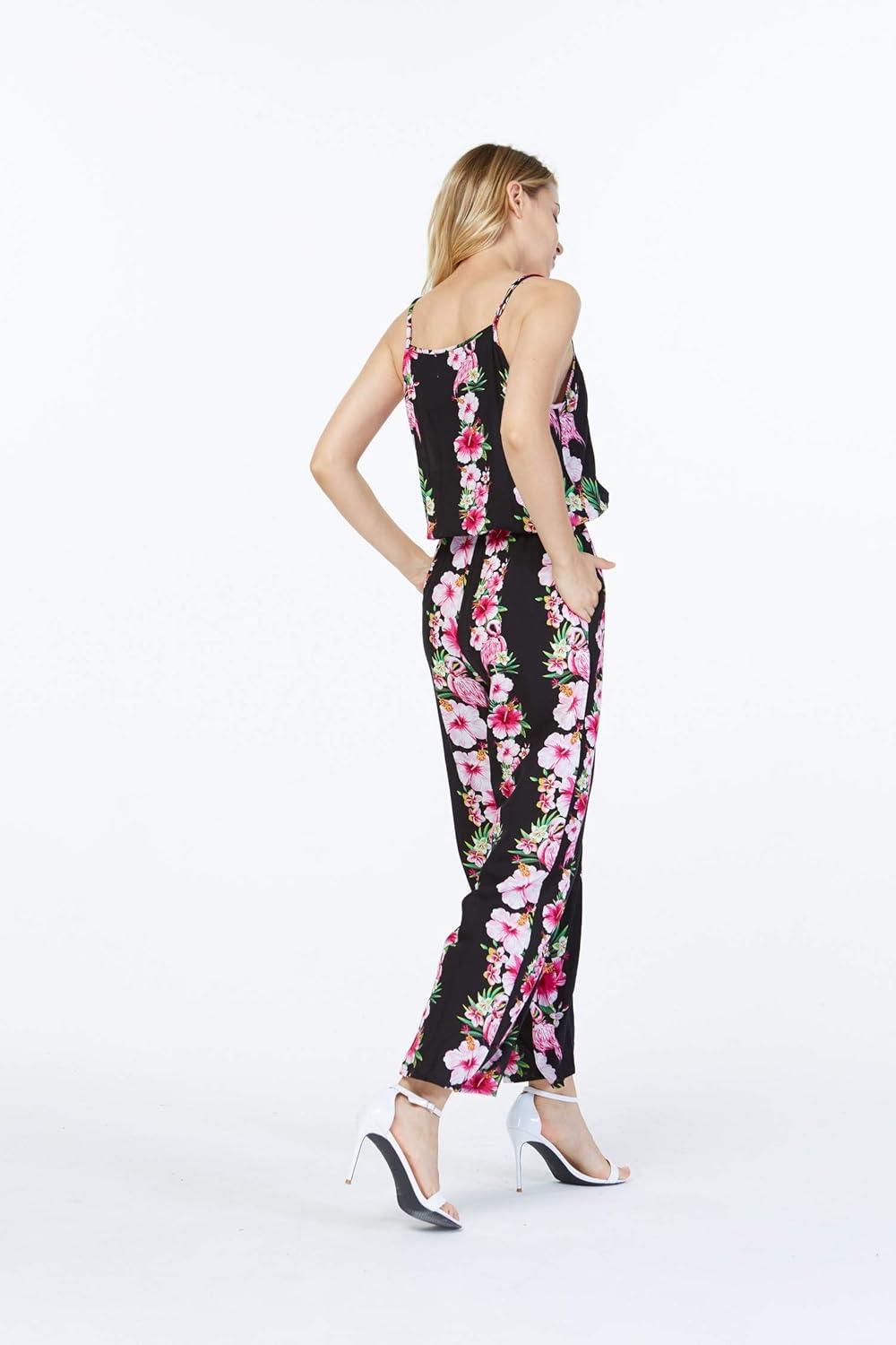 imageWomens Hawaiian Strap V with Pockets Jumpsuit in Pink Hibiscus VineGarden Poppy Yellow