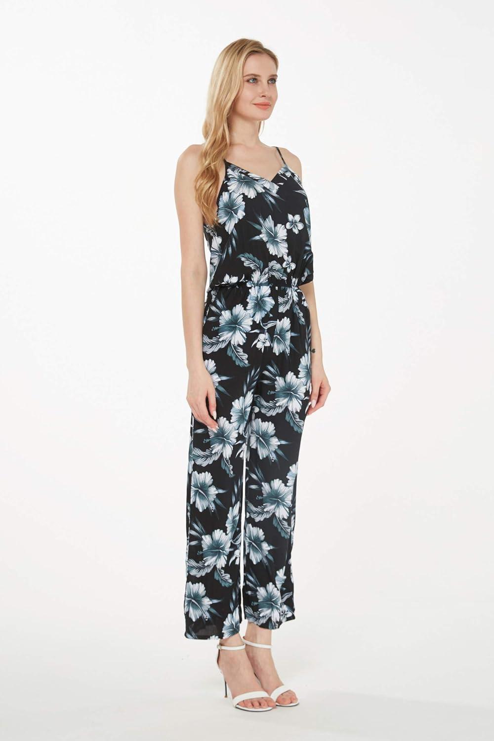 imageWomens Hawaiian Strap V with Pockets Jumpsuit in Simply Blue LeavesSimply Blue Leaves